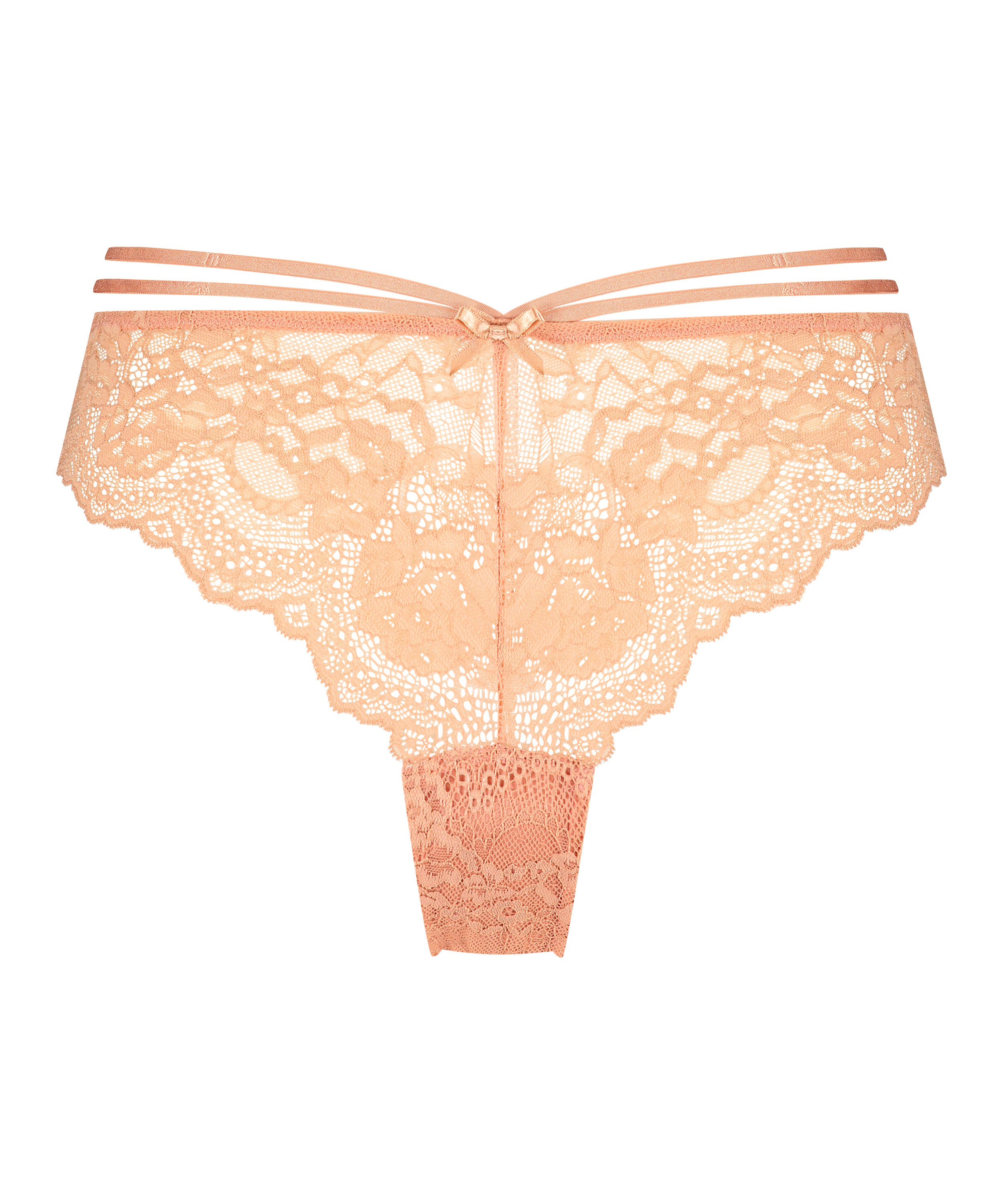 Zakochaj się w tych brazylianach! Półtransparentne z dużą ilością romantycznych koronek i seksownymi paskami na biodrach. Stwórz zestaw z dopasowanym biustonoszem!