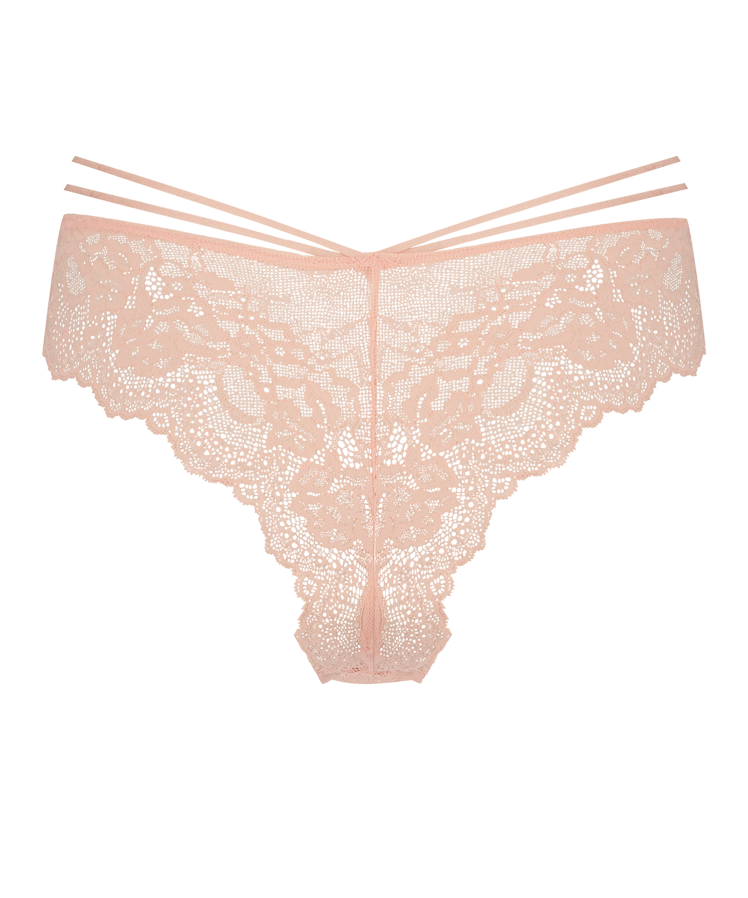 Zakochaj się w tych brazylianach! Półtransparentne z dużą ilością romantycznych koronek i seksownymi paskami na biodrach. Stwórz zestaw z dopasowanym biustonoszem!