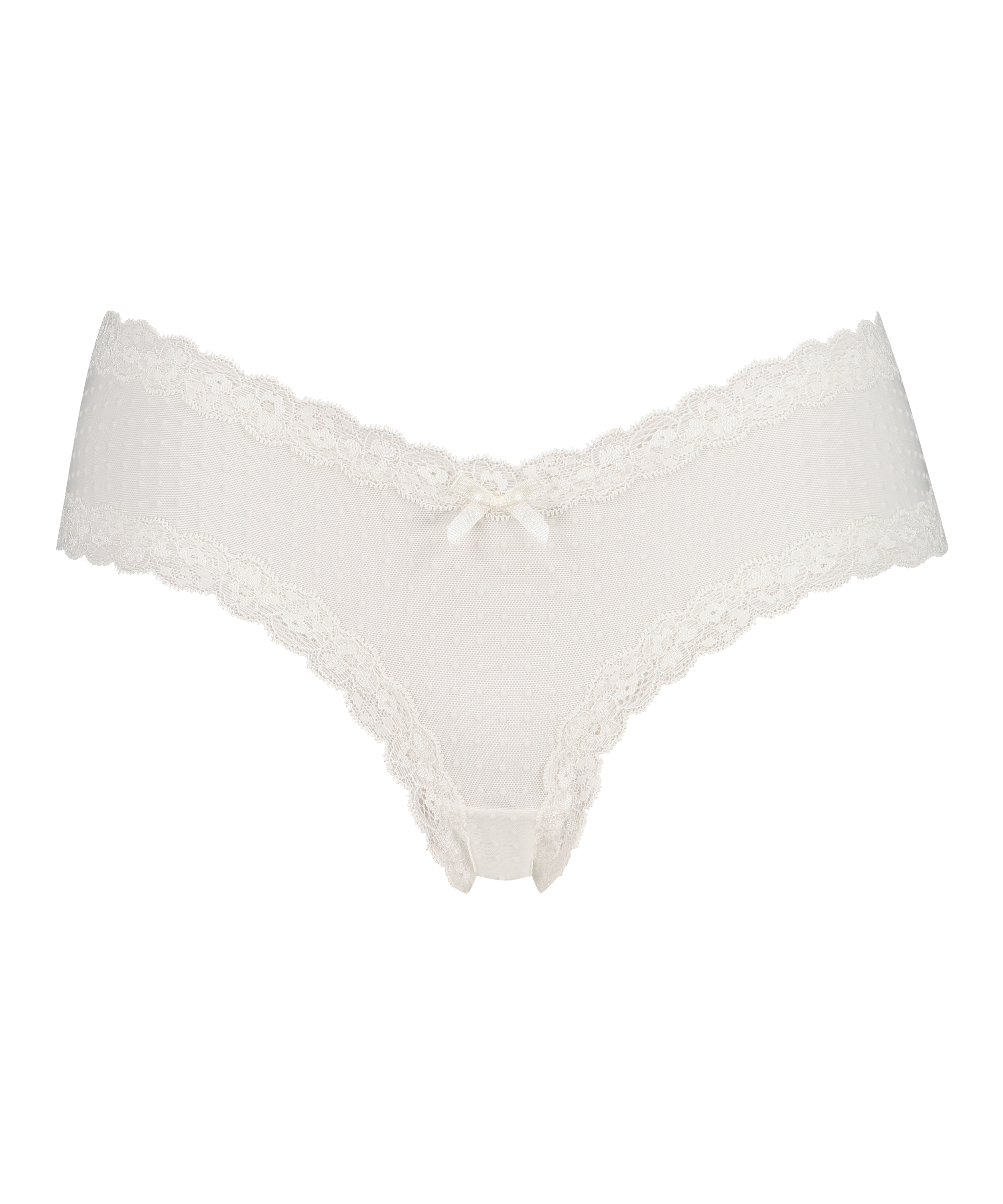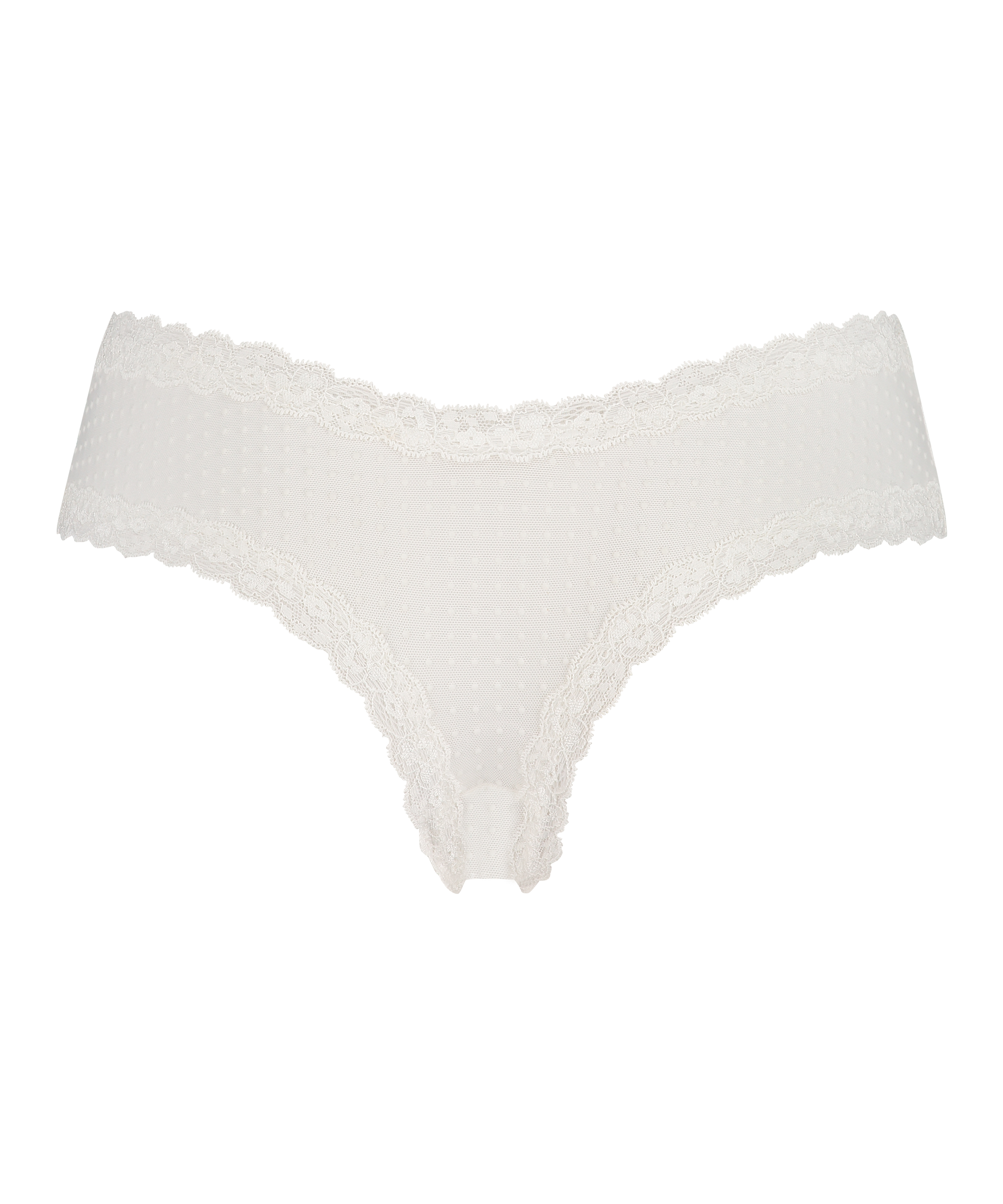 Te bardzo kobiece figi brazylijskie są wykończone koronkowym obrzeżem.