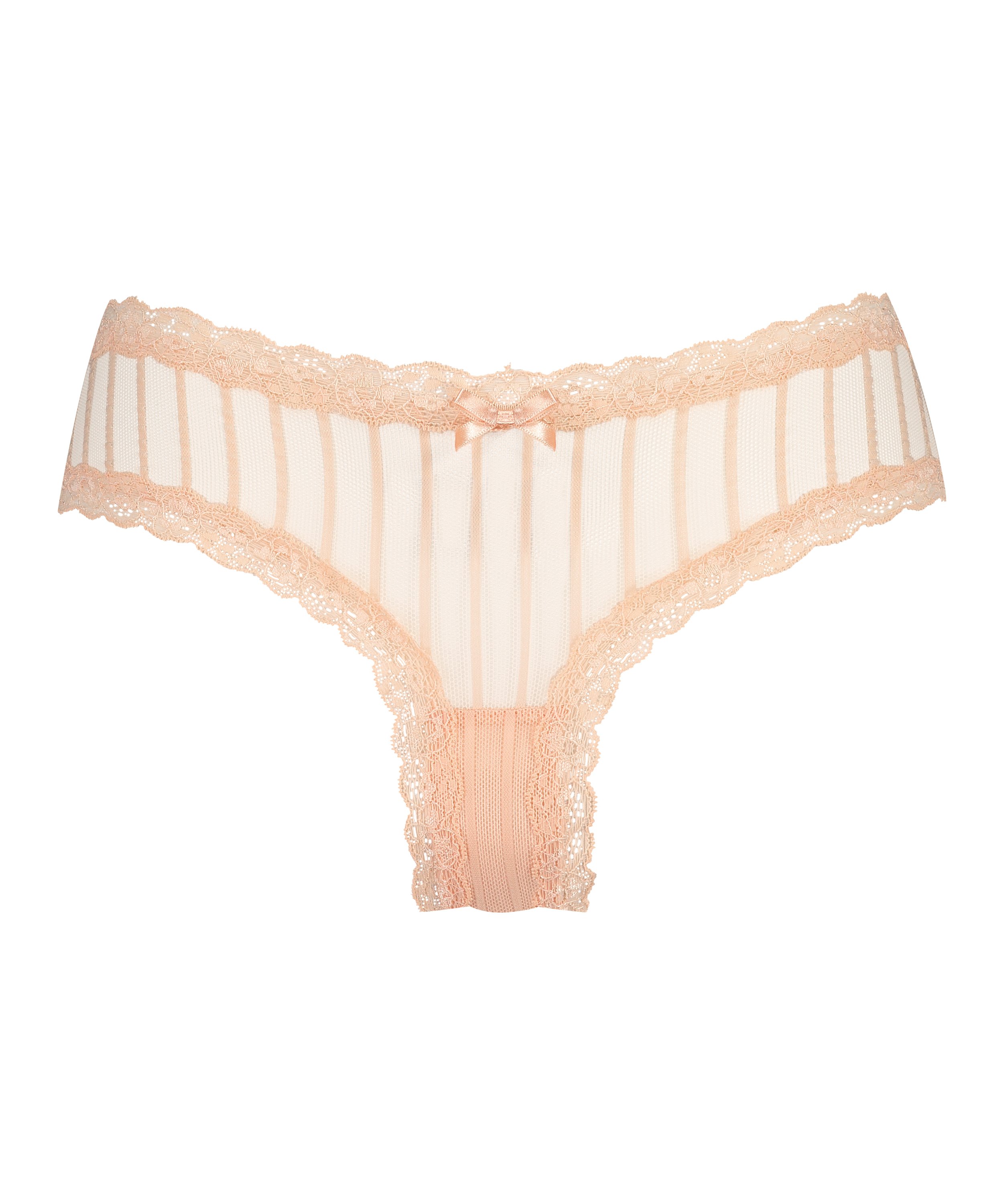 Te bardzo kobiece figi brazylijskie są wykończone koronkowym obrzeżem.