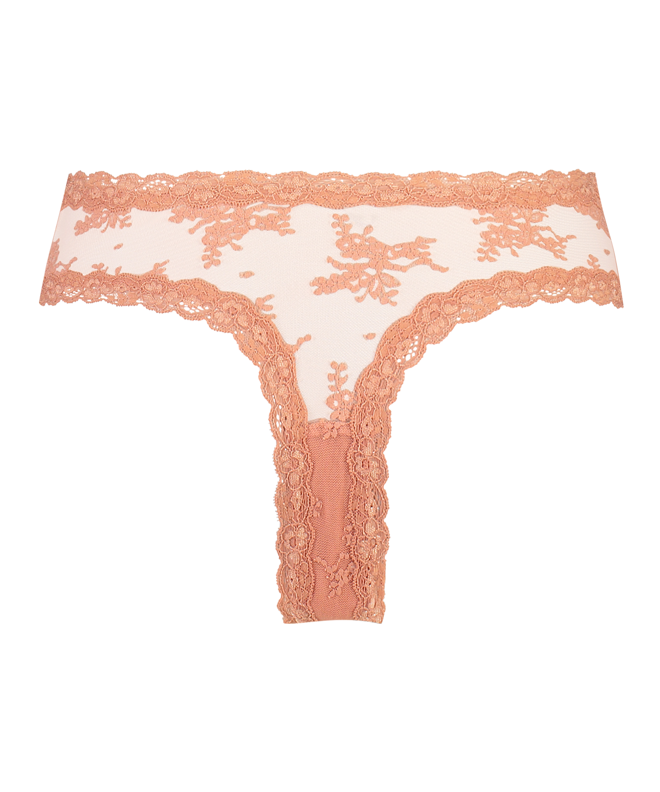 Te bardzo kobiece figi brazylijskie są wykończone koronkowym obrzeżem.