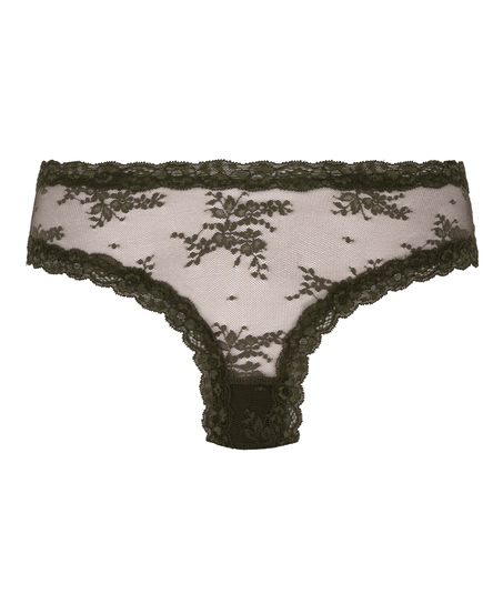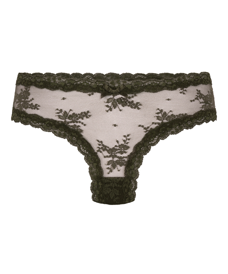 Te bardzo kobiece figi brazylijskie są wykończone koronkowym obrzeżem.