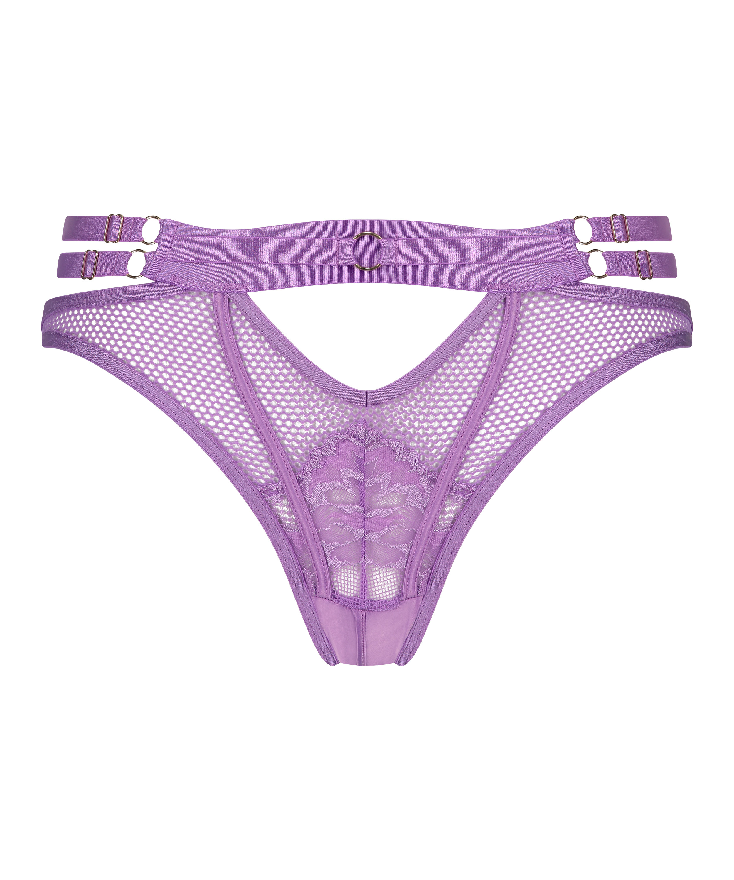Stwórz pikantną stylizację za pomocą tych brazylianów! Z koronką, paseczkami i wyciętymi detalami. Wyjątkowo odważne brazyliany z odkrytym kroczem i tyłem! Połącz z pasującymi produktami. Część kolekcji Private.