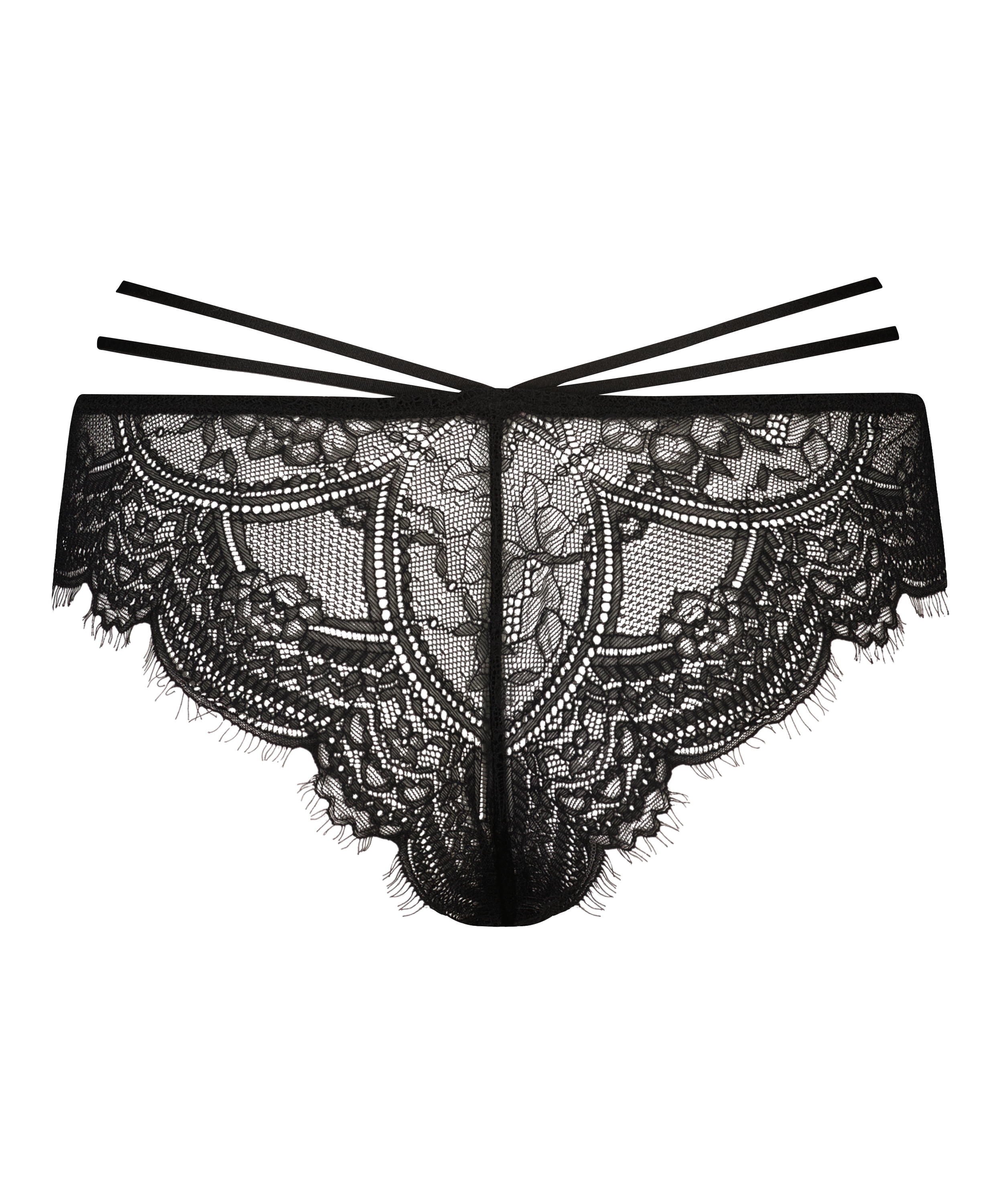 Te brazyliany z wysokim wycięciem są bardzo seksowne! Podkreślają nogi i mają detale z paseczków. Połącz z dopasowanym biustonoszem lub braletką, aby stworzyć komplet.