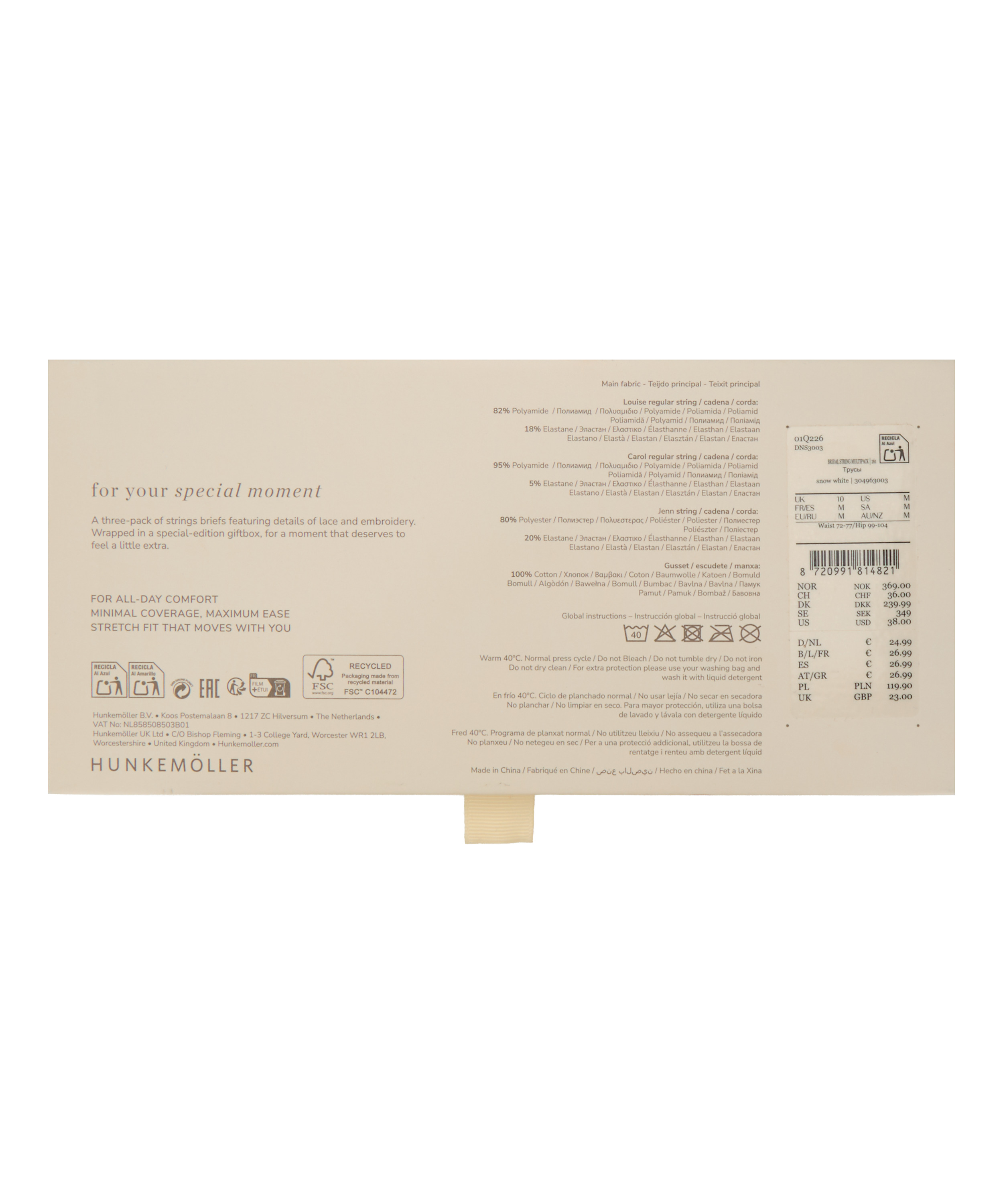 Świętuj każdą wyjątkową chwilę z naszym multipackiem stringów w stylu ślubnym—troje pięknie skoordynowanych stringów w jednym eleganckim pudełku, zaprojektowanych, aby każda panna młoda poczuła się wyjątkowo. Każde stringi mają delikatne ślubne detale, takie jak miękka koronka, subtelny haft lub urocze akcenty inspirowane wielkim dniem. Idealne na poranek ślubu, noce miodowe lub po prostu, aby dodać odrobinę romantyzmu do przygotowań. Ten zestaw łączy praktyczność z odświętnym urokiem. Spraw, aby dni wokół twojego 'tak' były jeszcze bardziej wyjątkowe.