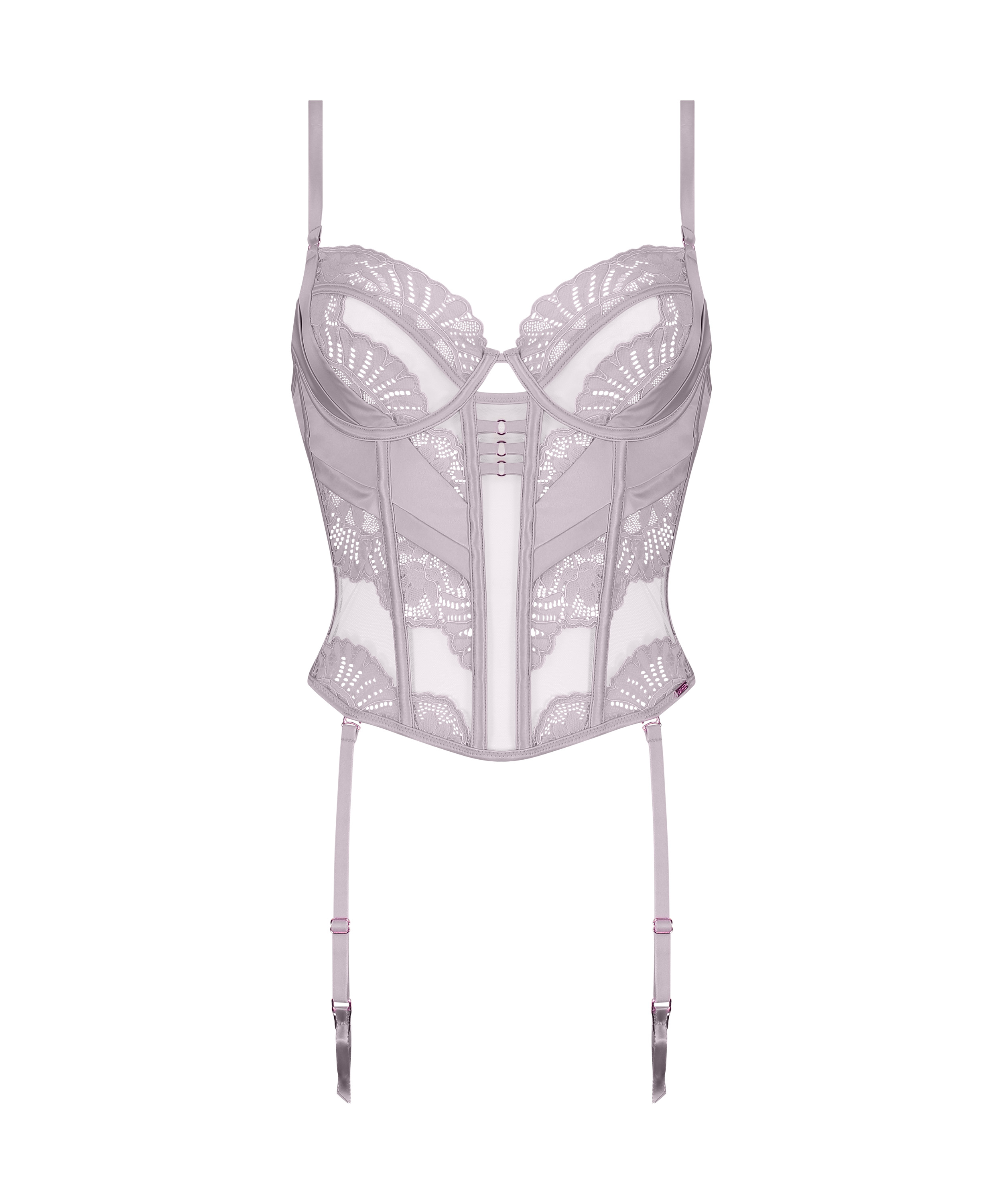 Elegancki bustier Almendra, będący nową, oszałamiającą odsłoną klasycznego fasonu, stanie się Twoim ulubionym elementem bielizny. Wykończony pięknymi paskami, podtrzymującą fiszbiną i przezroczystą koronkową tkaniną, ten nowoczesny model przyciąga wzrok podczas noszenia. Jeśli masz obsesję na punkcie dopasowywania różnych rzeczy, koniecznie uzupełnij go brazylijką i stringami Almendra. Załóż parę pończoch i masz wspaniały, kompletny zestaw! Część kolekcji Noir.