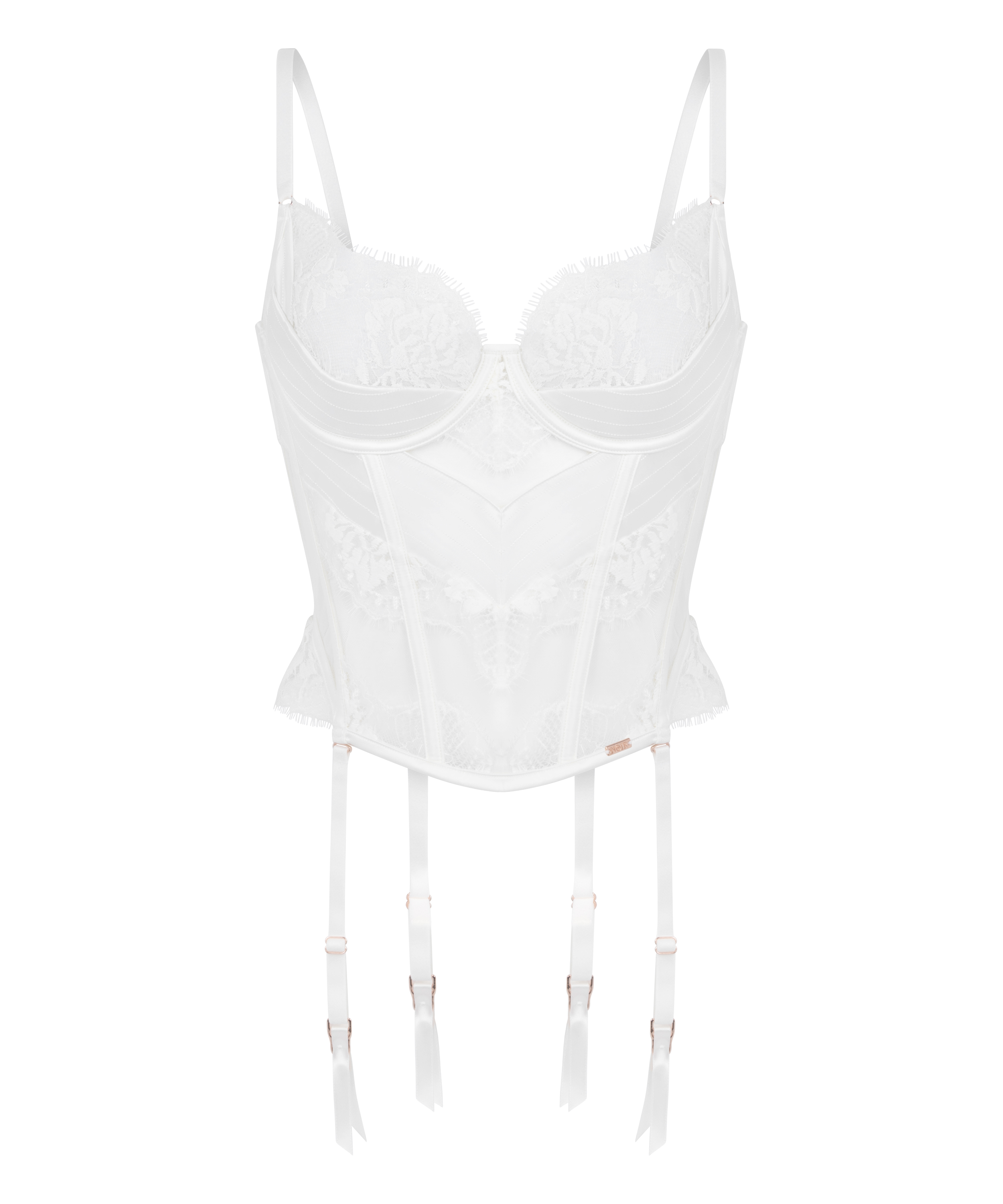 Podkreśl swój urok tym olśniewającym gorsetem z koronki i siateczki! Połączenie prześwitujących i błyszczących materiałów tworzy urzekający kontrast, a strukturalny krój i grubsza dolna część miseczek modelują i podtrzymują biust. Odpinane paski do szelek pozwolą Ci dopasować swój wygląd do każdej okazji!