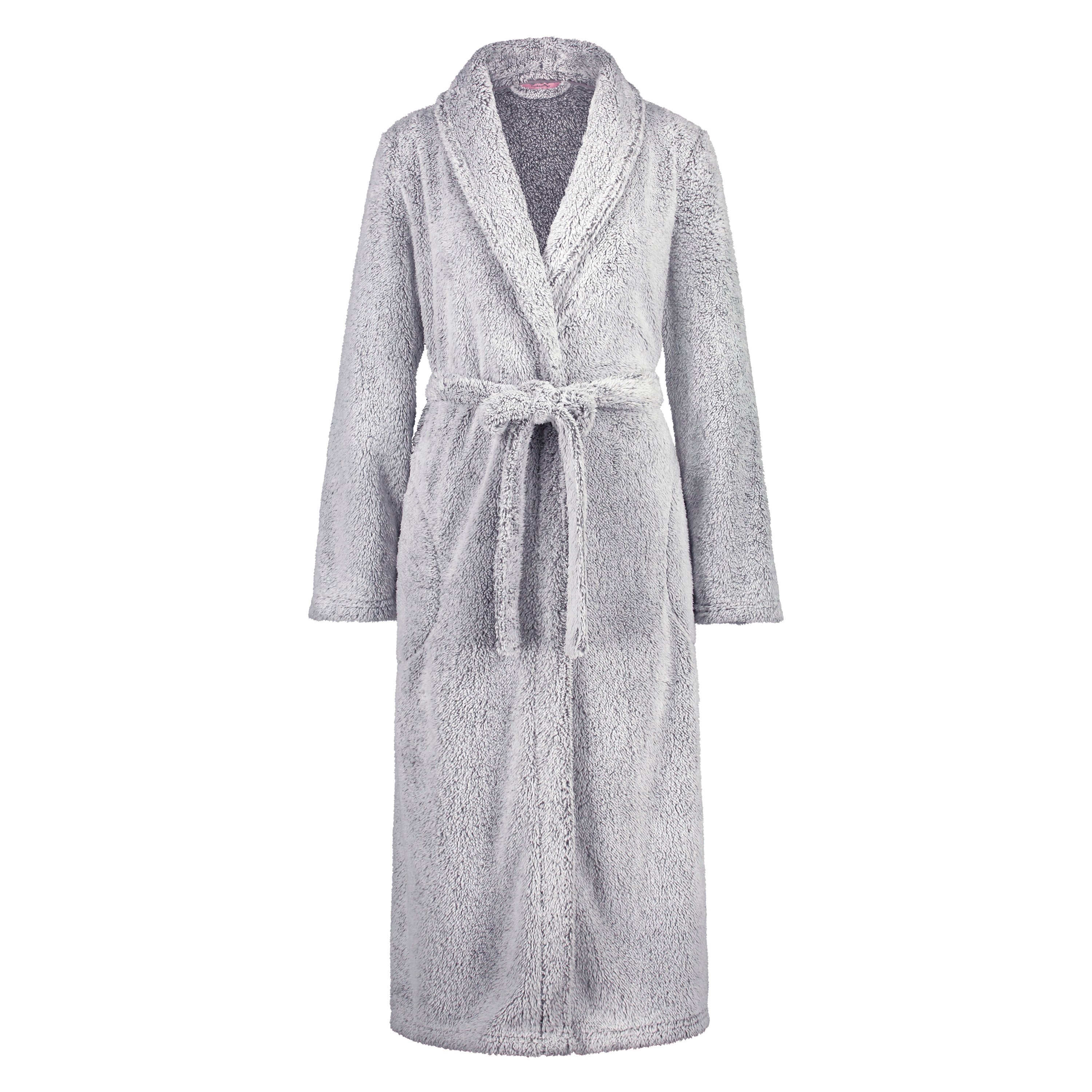Ten uroczy, miękki szlafrok poniżej kolan jest wiązany szarfą i ma kieszenie po bokach.