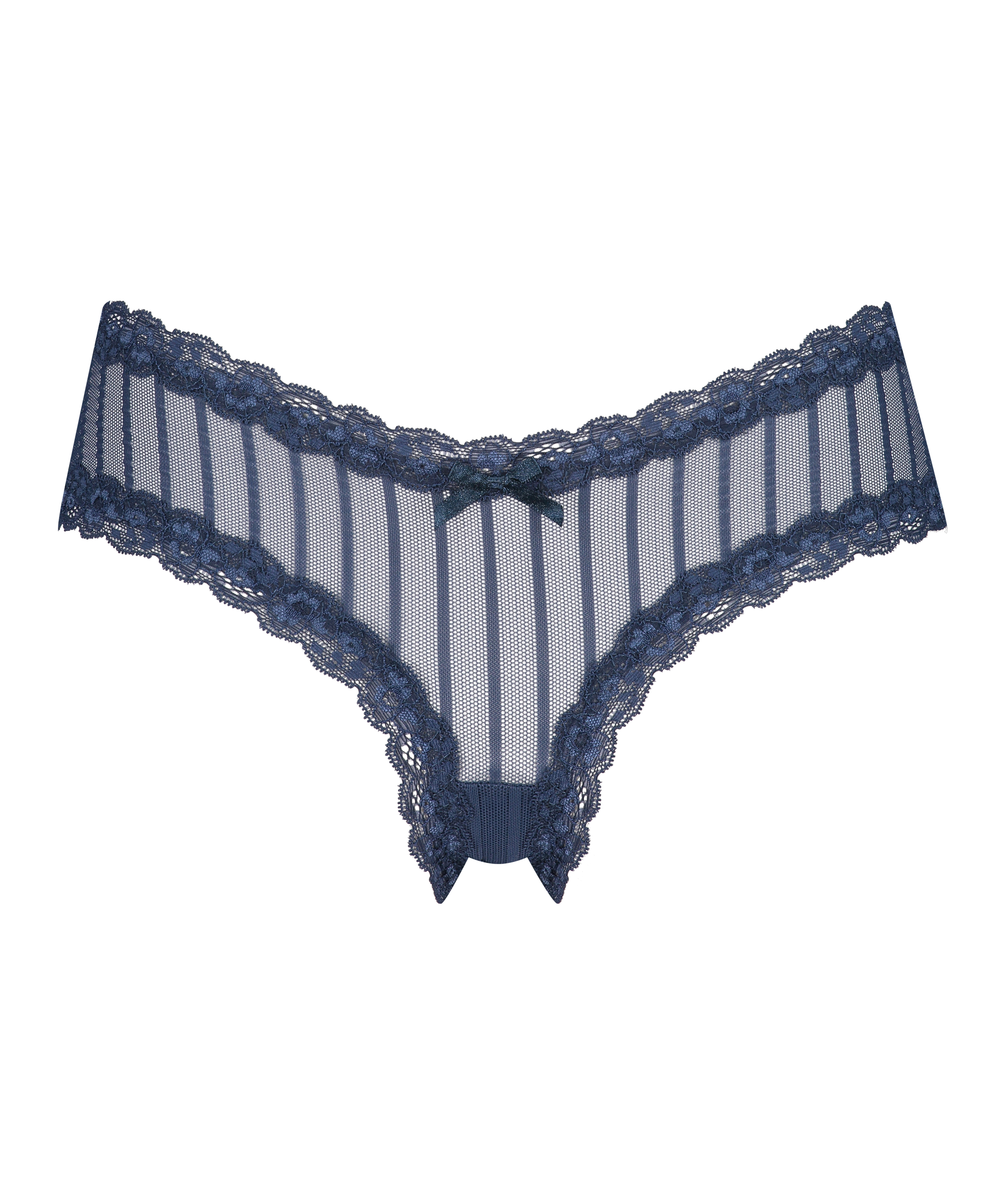 Te bardzo kobiece figi brazylijskie są wykończone koronkowym obrzeżem.