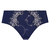 Te figi z wysokim stanem są wykonane z elastycznego, dopasowującego się do ciała materiału i ozdobione są kwiatowym haftem oraz małą kokardką z przodu.