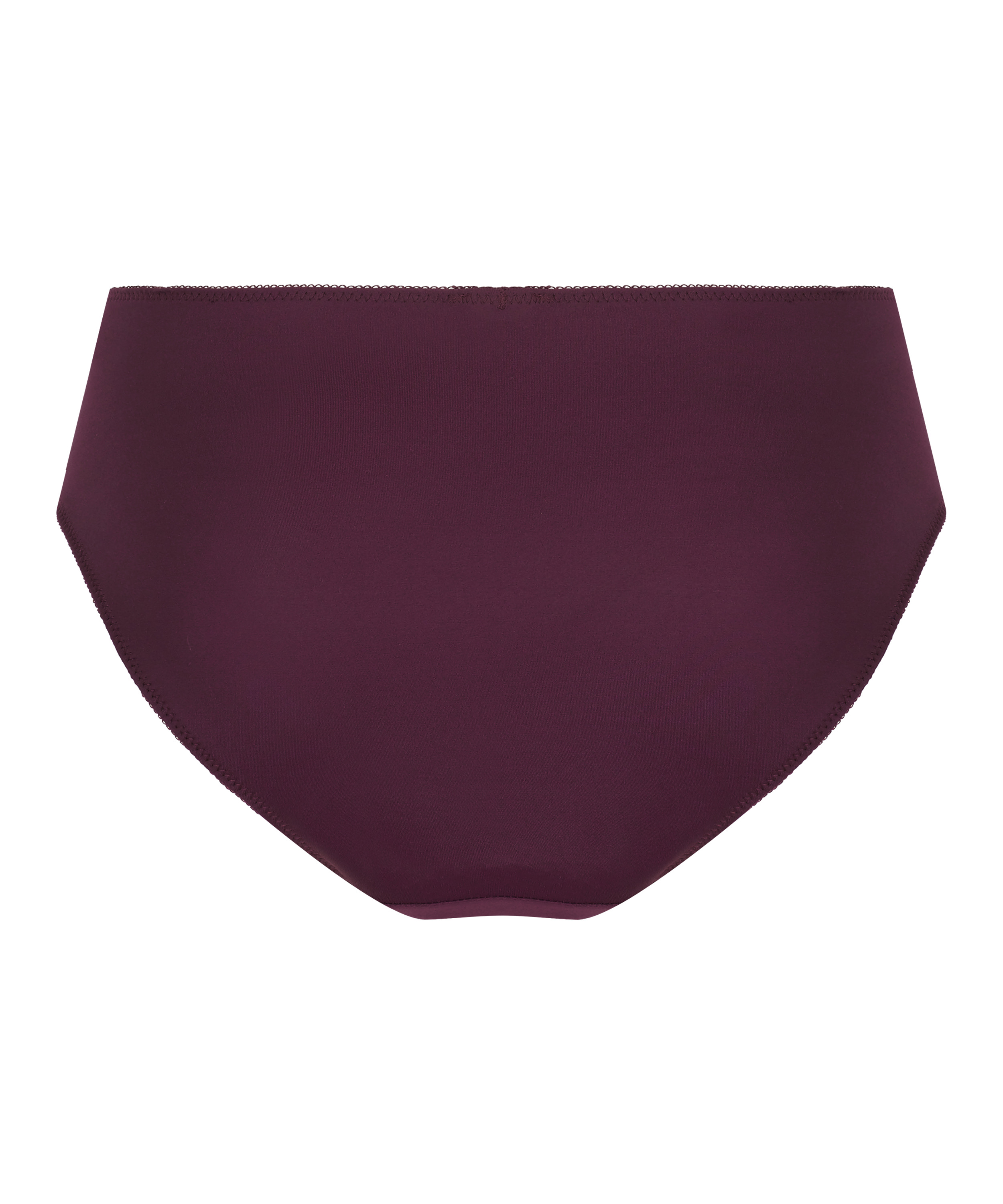 Te figi z wysokim stanem są wykonane z elastycznego, dopasowującego się do ciała materiału i ozdobione są kwiatowym haftem oraz małą kokardką z przodu.