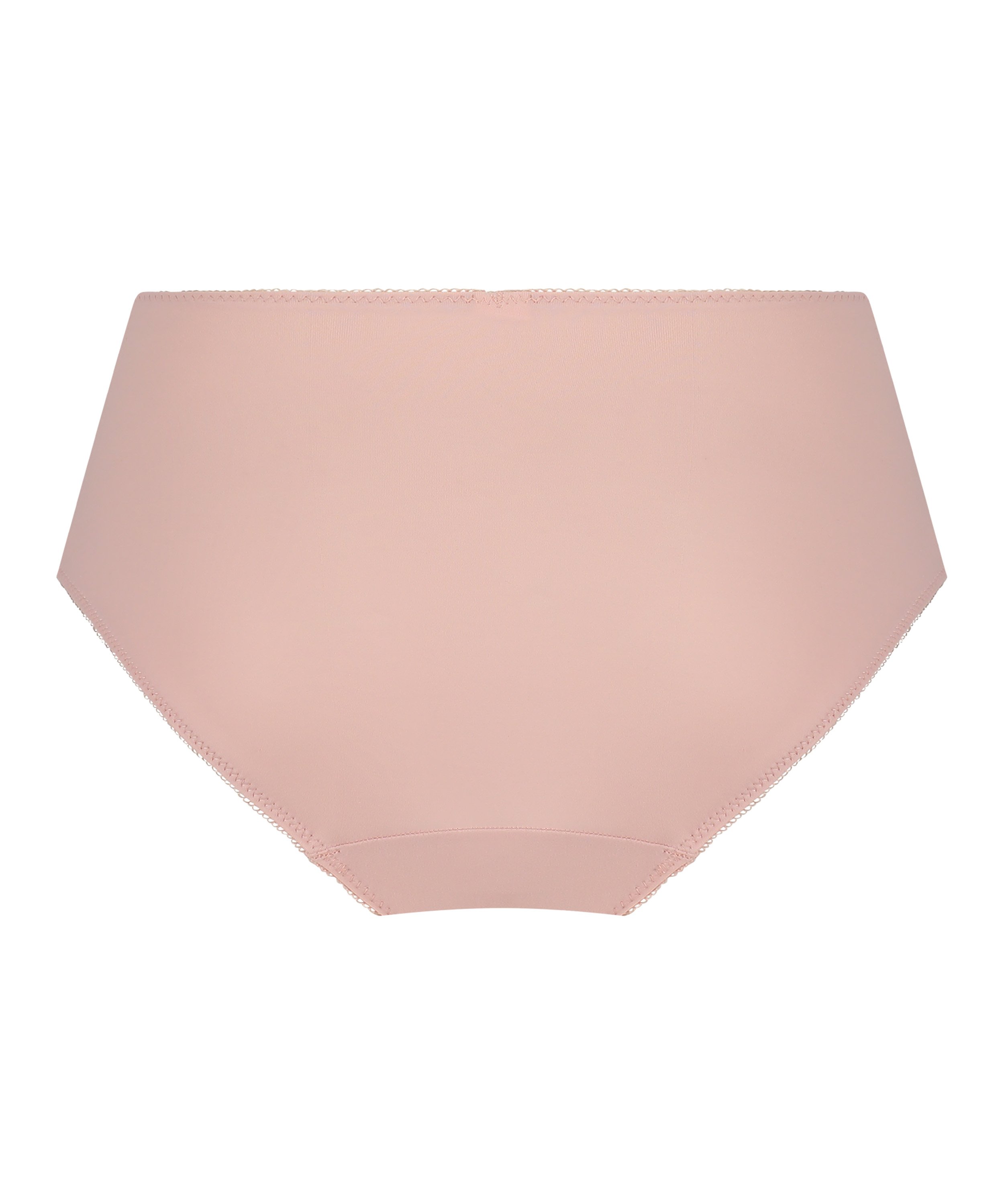 Te figi z wysokim stanem są wykonane z elastycznego, dopasowującego się do ciała materiału i ozdobione są kwiatowym haftem oraz małą kokardką z przodu.