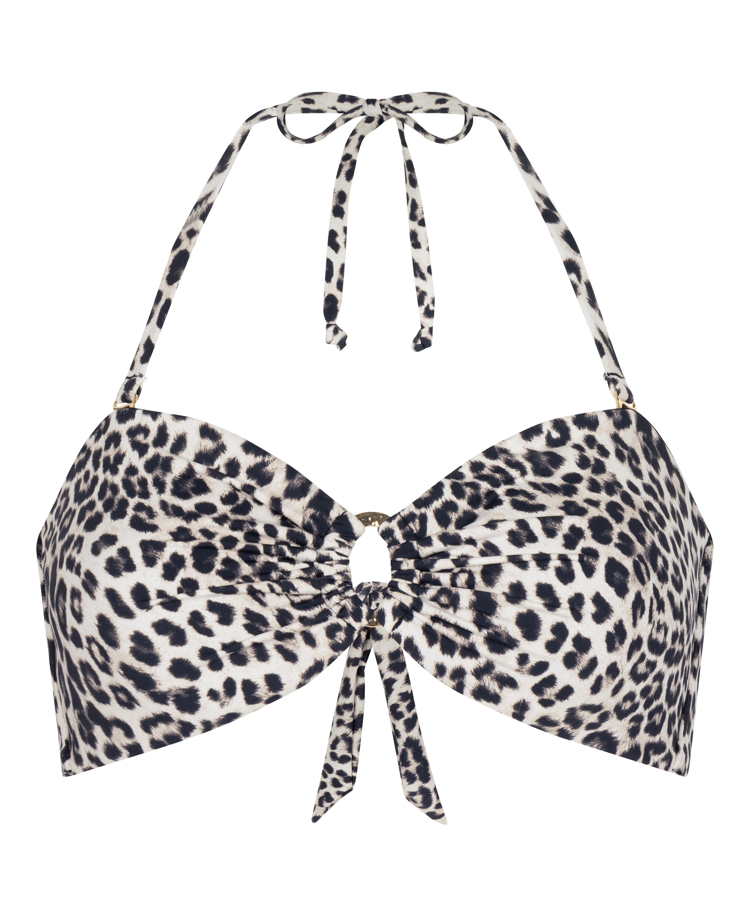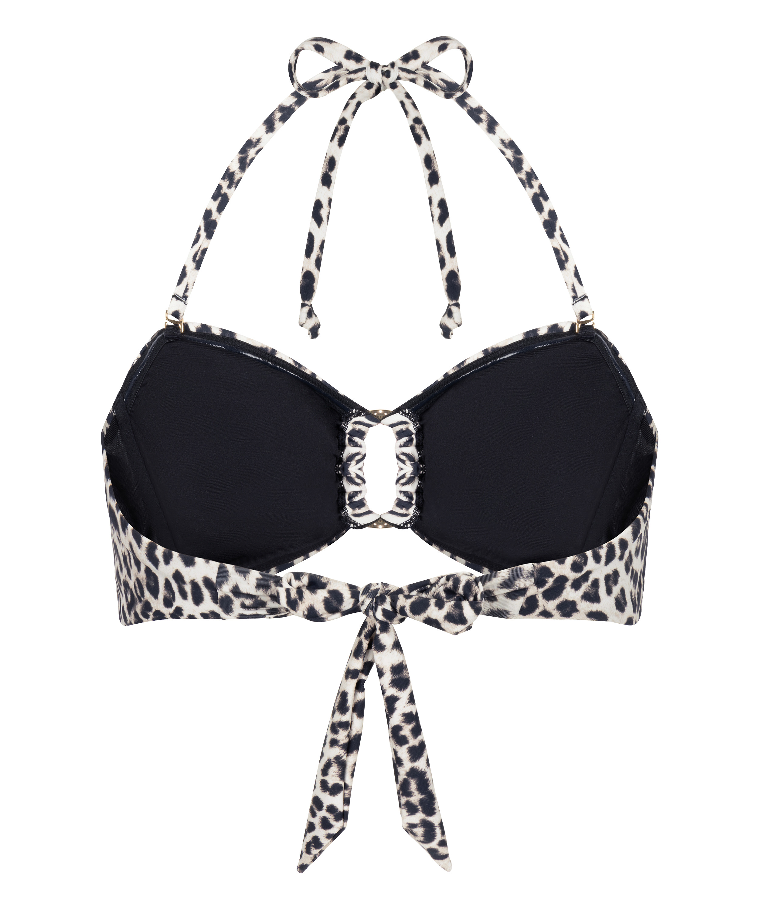 Ten wyściełany, bezfiszbinowy top bandeau od bikini w panterkę łączy wygodę z odważnym, zabawnym stylem. Dzięki wiązaniom na szyi i plecach zapewnia w pełni regulowane, dopasowane ułożenie. Miękkie wyściółki delikatnie modelują sylwetkę, zachowując naturalny, swobodny komfort. Idealny do pływania, opalania lub relaksu, doskonale komponuje się z dopasowanymi majtkami.
