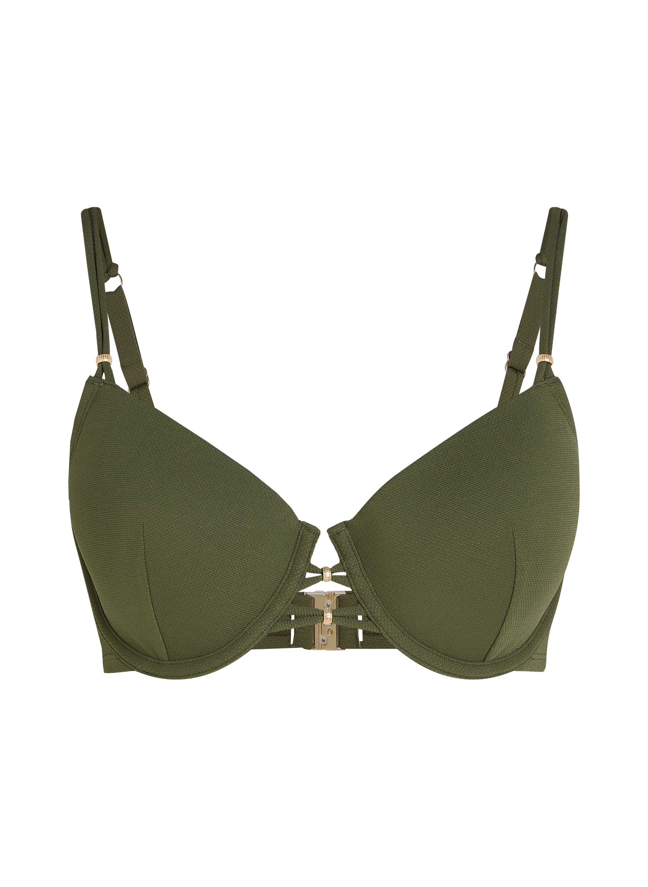 W pełni wykorzystaj uroki plaży dzięki naszemu stylowemu topowi od bikini! Model z fiszbinami i eleganckim, ozdobionym koralikami paskiem pomiędzy miseczkami zapewnia zarówno styl, jak i wygodę. Posiada również regulowane paski na ramiona i wygodne zapięcie na zatrzask z tyłu, które gwarantuje bezpieczne dopasowanie. Połącz ją ze swoimi ulubionym dołem i przygotuj się na rozkoszowanie się słońcem w niezwykłym stylu! Nasze stroje kąpielowe są wykonane z wysokiej jakości tkanin i podszewek, aby zapewnić wspierające dopasowanie. Jeśli wolisz luźniejsze dopasowanie, zalecamy wybór rozmiaru większego.