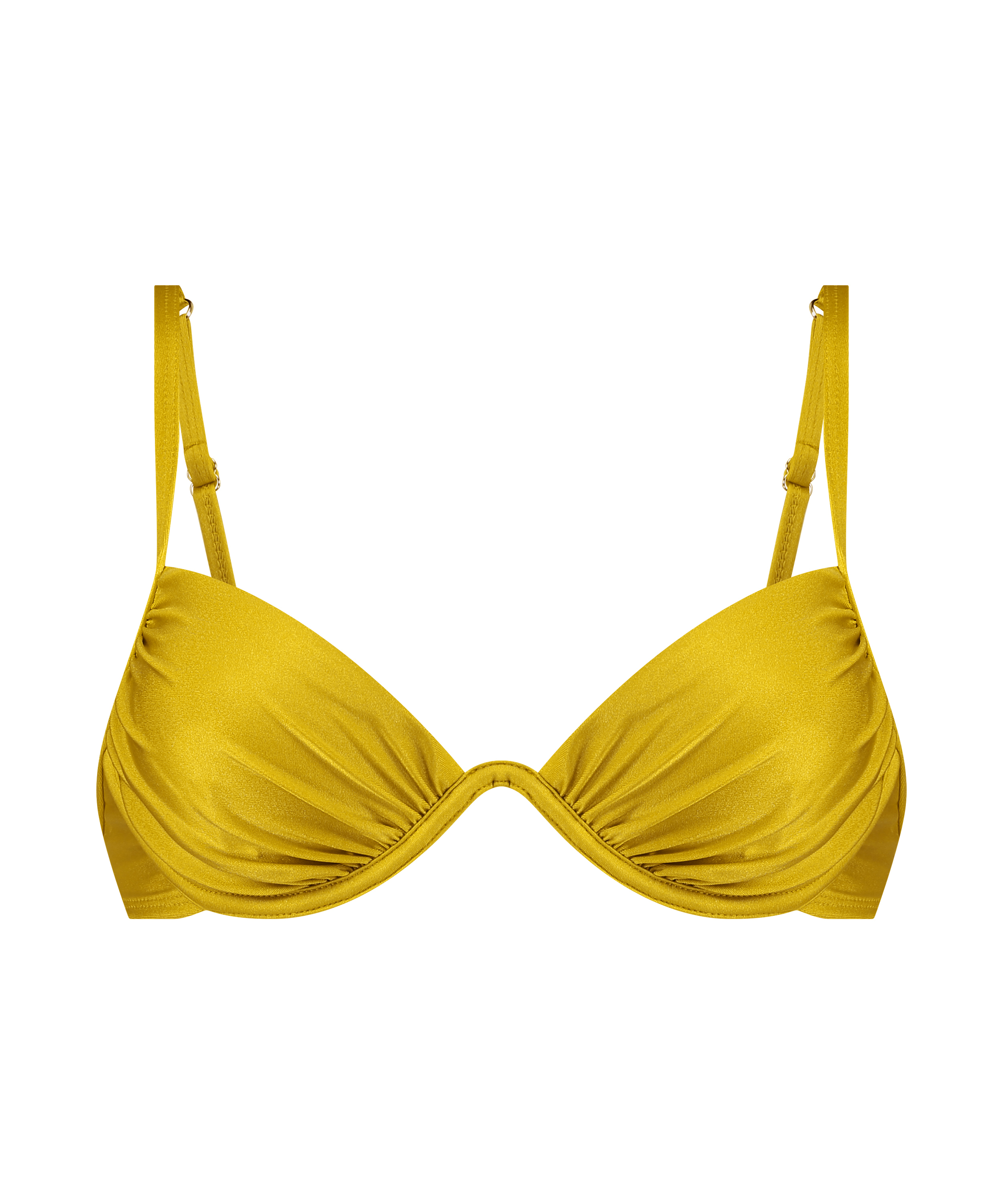 Ta górna część bikini ma modny wygląd i jest idealna dla Ciebie! Materiał jest błyszczący i ma drobne złote detale. Połącz z dopasowanymi elementami, aby utworzyć komplet.