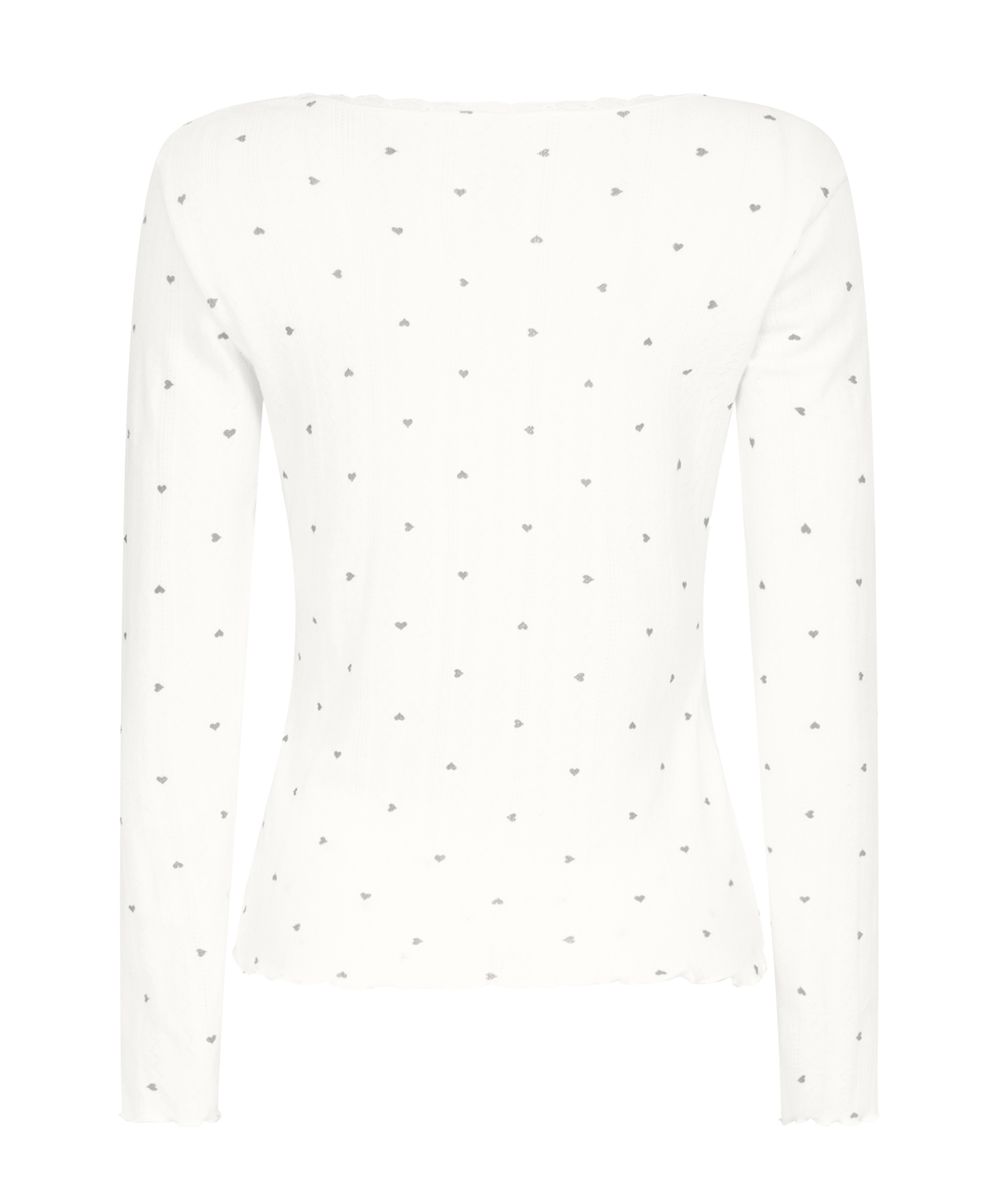 Poczuj się komfortowo w tym uroczym swetrze z długimi rękawami i okrągłym dekoltem. Model wykonany z bardzo miękkiej tkaniny w piękny wzór z uroczymi, marszczonymi brzegami. Połącz go z pasującymi spodniami, aby stworzyć wygodny zestaw!