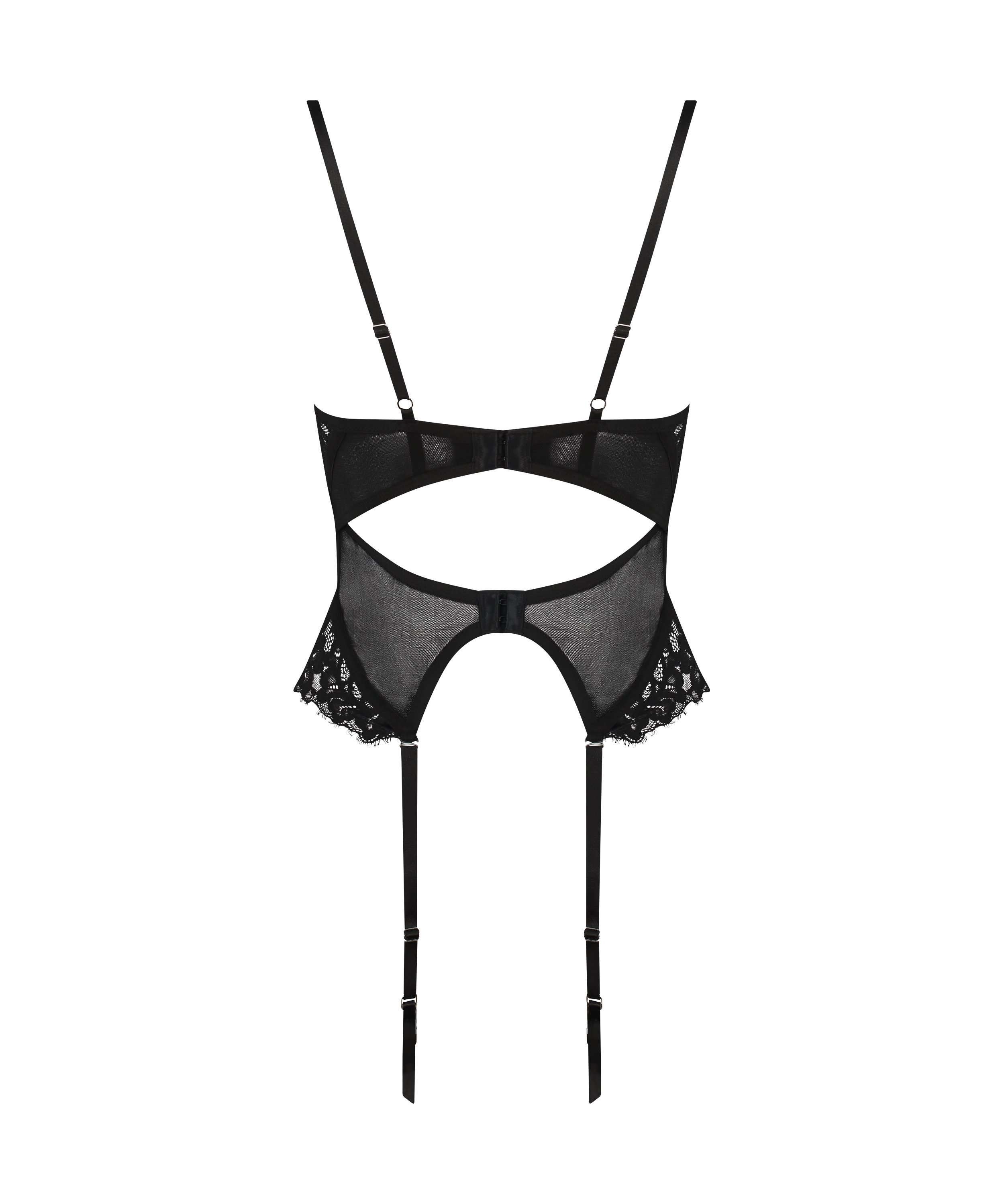 Odśwież swoją kolekcję bielizny dzięki naszemu ponętnemu koronkowemu gorsetowi! Ten wyrazisty element ma delikatne koronkowe detale i zmysłowe wycięcia z siatki, które zapewniają zniewalający wygląd. Oferuje indywidualne dopasowanie dzięki regulowanym paskom i odrobinę figlarnej elegancji dzięki odpinanym szelkom. Połącz go z pasującą bielizną i pończochami, aby uzyskać kompletny zestaw!
