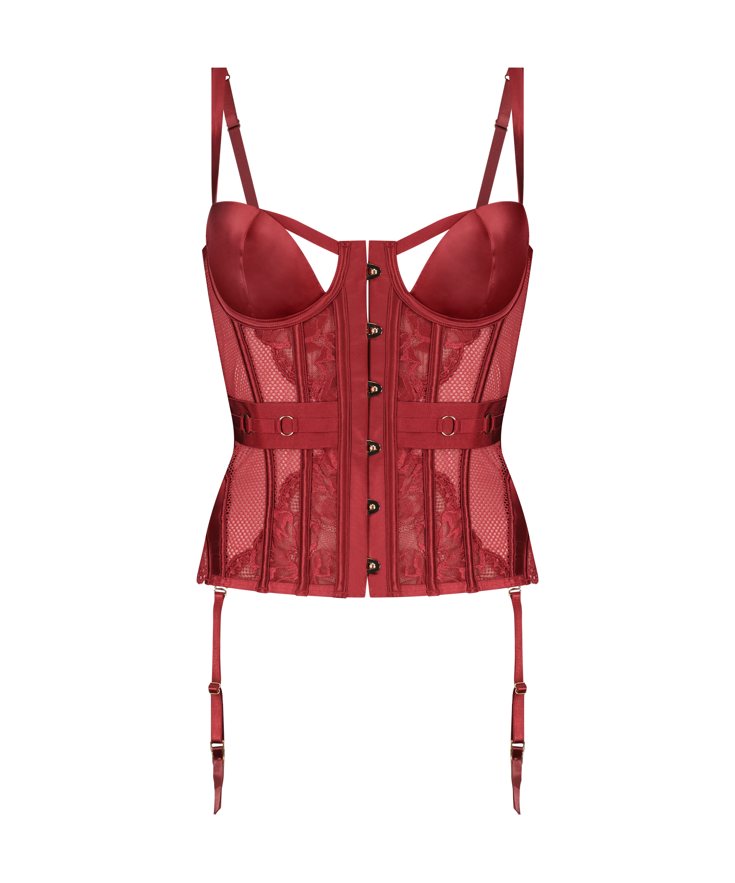 Odkryj swój uwodzicielski charakter z tym seksownym gorsetem! Został uszyty z przeźroczystej siateczki i ozdobiony mnóstwem koronki. Miseczki z fiszbinami wykonano z satynowego materiału. Zapinany z przodu z pikantnym, metalowym zdobieniem. Fiszbiny z przodu i z tyłu zapewniają wygodę noszenia, a paski wokół talii dodają szyku. Istnieje możliwość dociągnięcia pleców za pomocą sznurka napinającego, aby upewnić się, że gorset leży idealnie. Znajdź pasujące majtki i połącz wyroby pończosznicze, aby skompletować zestaw!