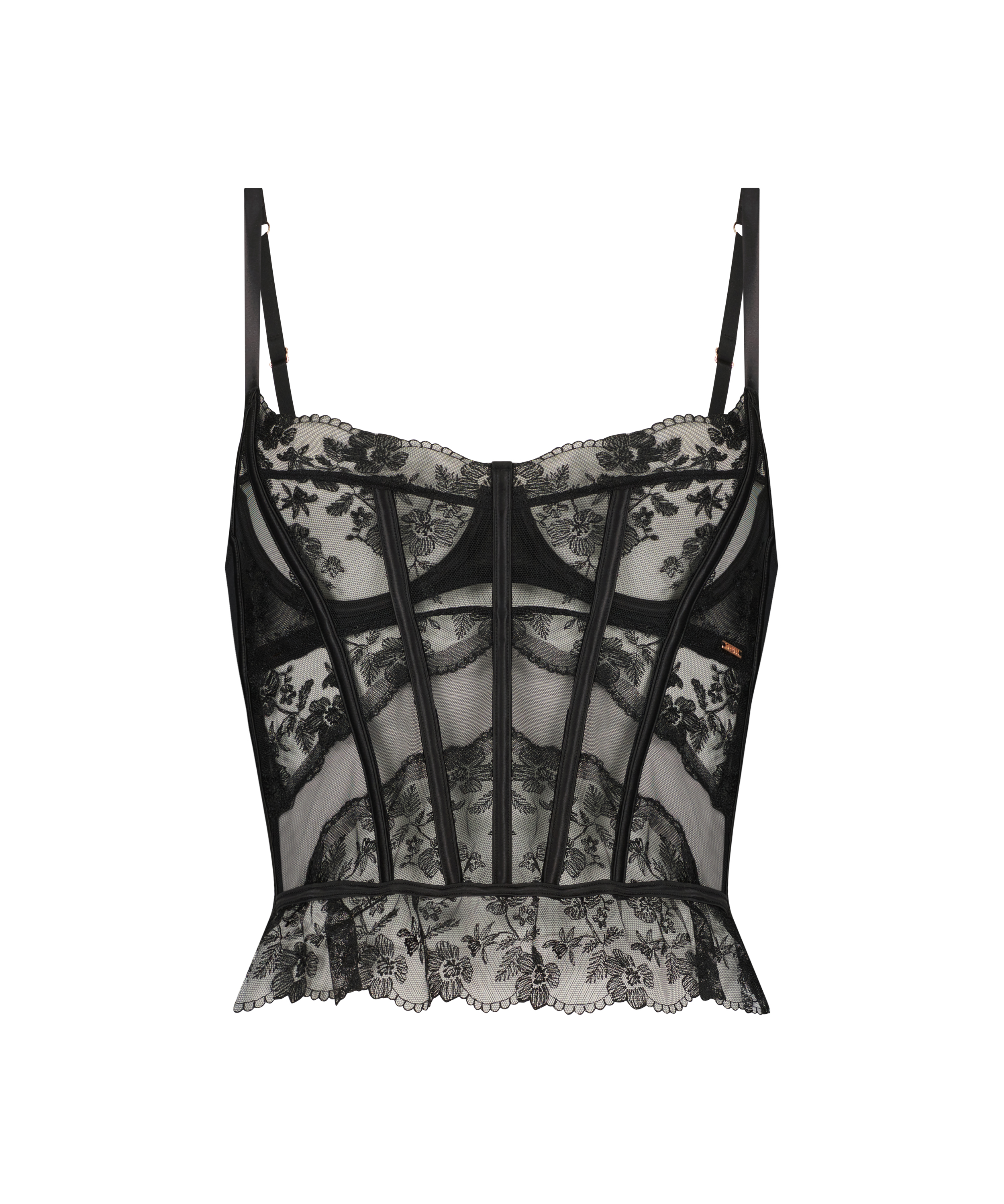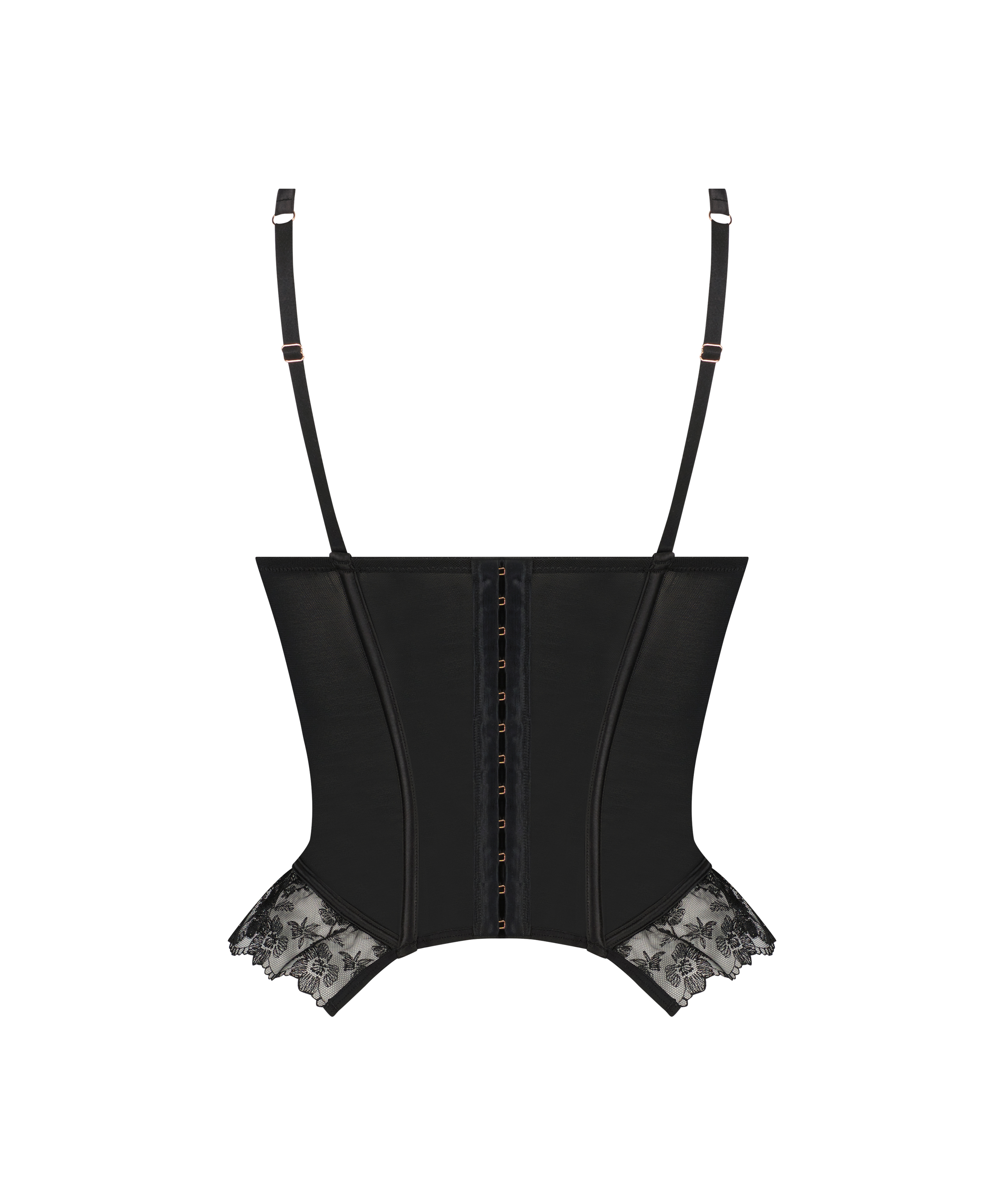 Postaw na wspaniałą stylizację z tym romantycznym gorsetem. Miseczki mają fiszbiny zapewniające dobre dopasowanie. Połącz z innymi elementami z kolekcji Noir.