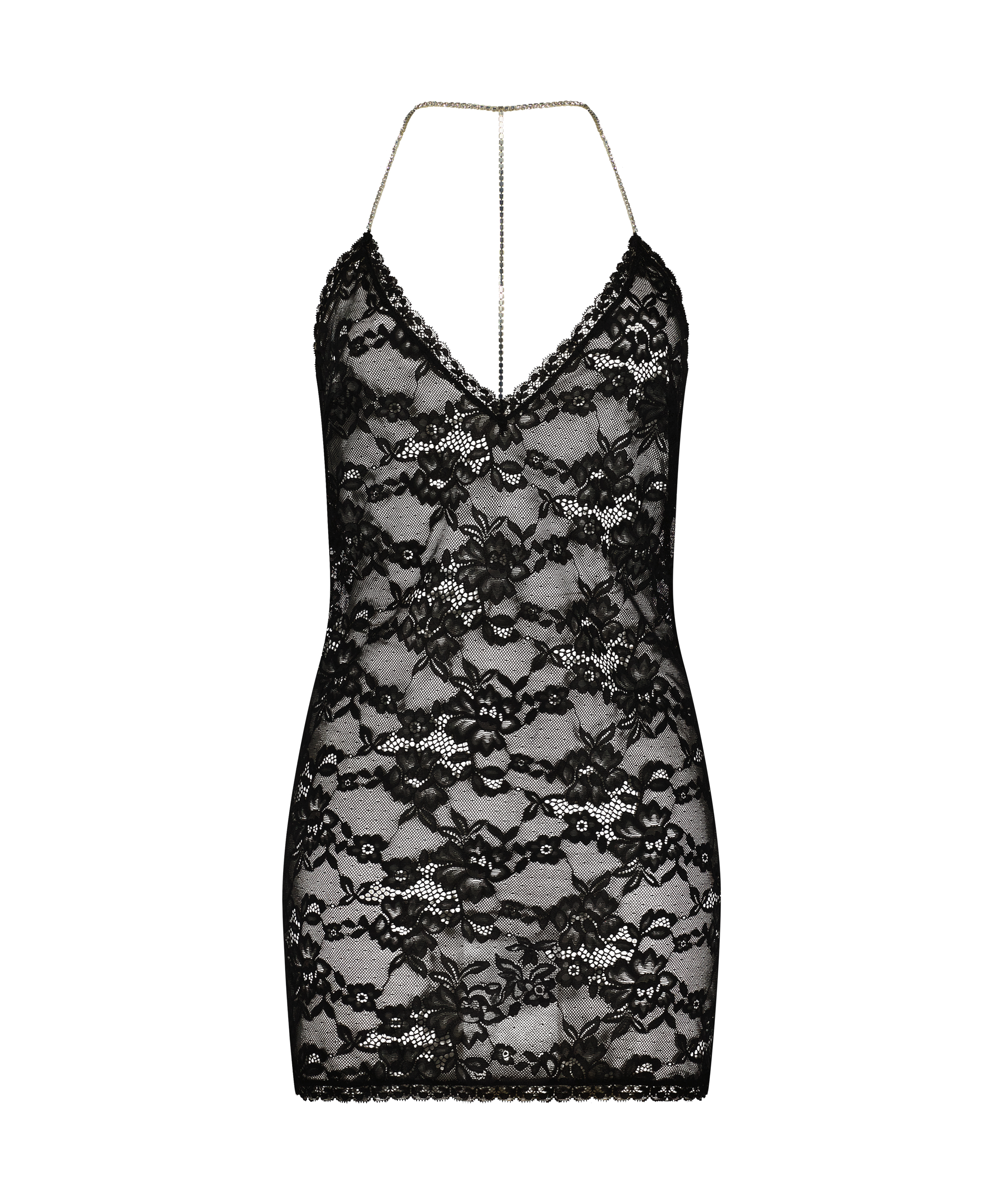 Ta halka jest niesamowicie seksowna! Koronka nadaje tej halce półprzezroczysty i prowokujący wygląd. Tył nie niemal całkowicie otwarty. Połącz z akcesoriami. Część kolekcji Private.
