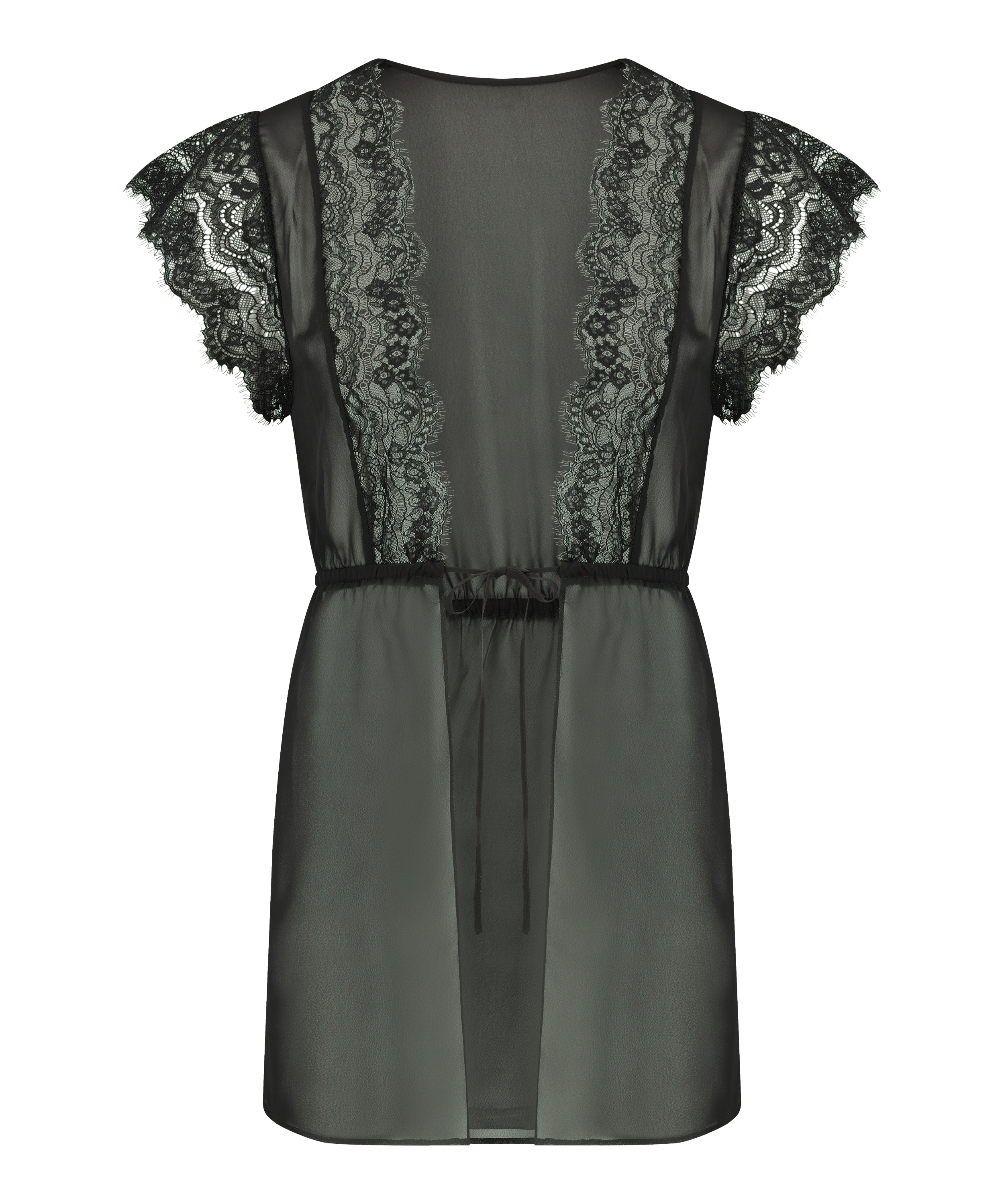 Wyraź siebie za pomocą tego wyjątkowo seksownego kimona! Półtransparentne z dużą ilością koronki! Możesz je zawiązać tak, aby idealnie dopasowywało się do ciała za pomocą wstążki z przodu. Z rozcięciem po obu bokach. Połącz z biustonoszem z kompletu!
