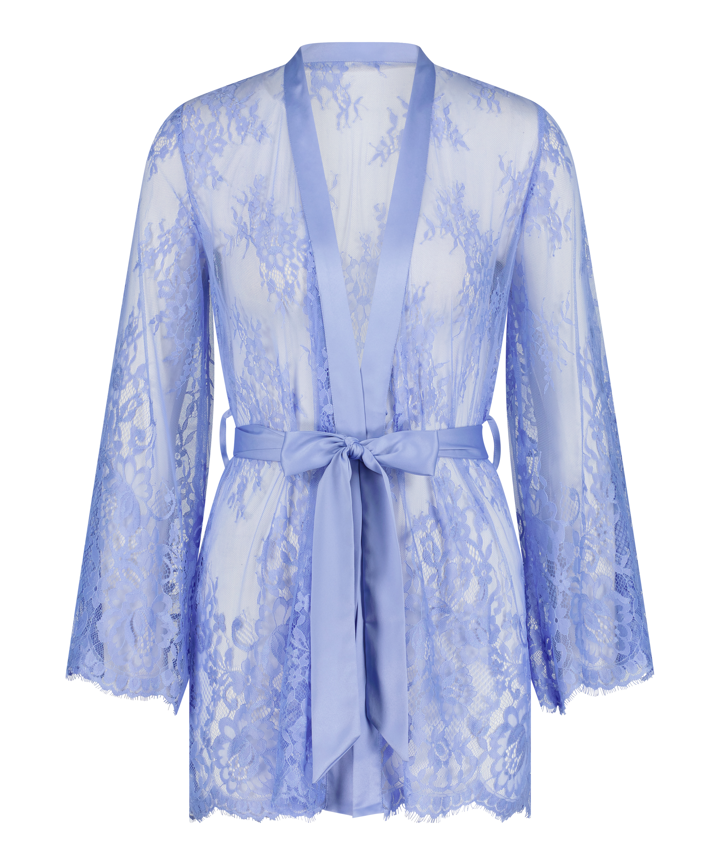 To kimono ma wszystko czego potrzebujesz: są seksowne, kobiece i mają dużo koronki. Wykonane jest z przezroczystej koronki z satynowymi detalami i ma zapięcie na guziki z przodu.