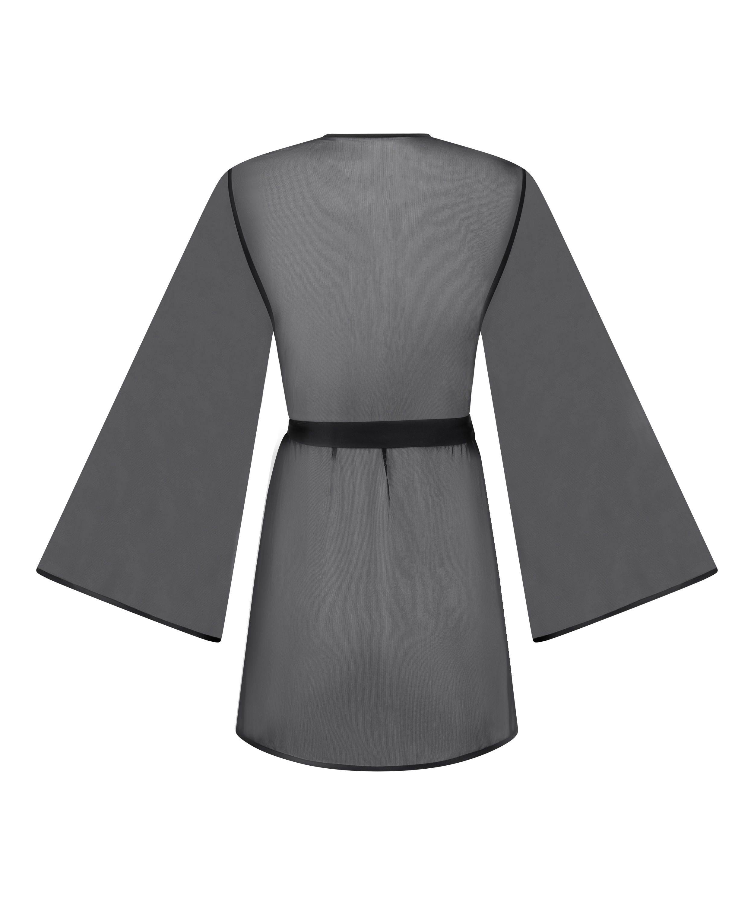 Postaw na elegancję i załóż to kimono z siateczki zaprojektowane tak, aby uatrakcyjnić Twoją nocną bieliznę. Prześwitująca siateczka pięknie się układa, dodając wieczorowej stylizacji delikatnego i kobiecego akcentu. Lekkie i przewiewne, doskonale nadaje się do noszenia na bieliźnie lub piżamie. Płynna krój i delikatne detale tworzą romantyczny, swobodny strój. Połącz je ze swoim ulubionym biustonoszem, aby stworzyć zestaw.