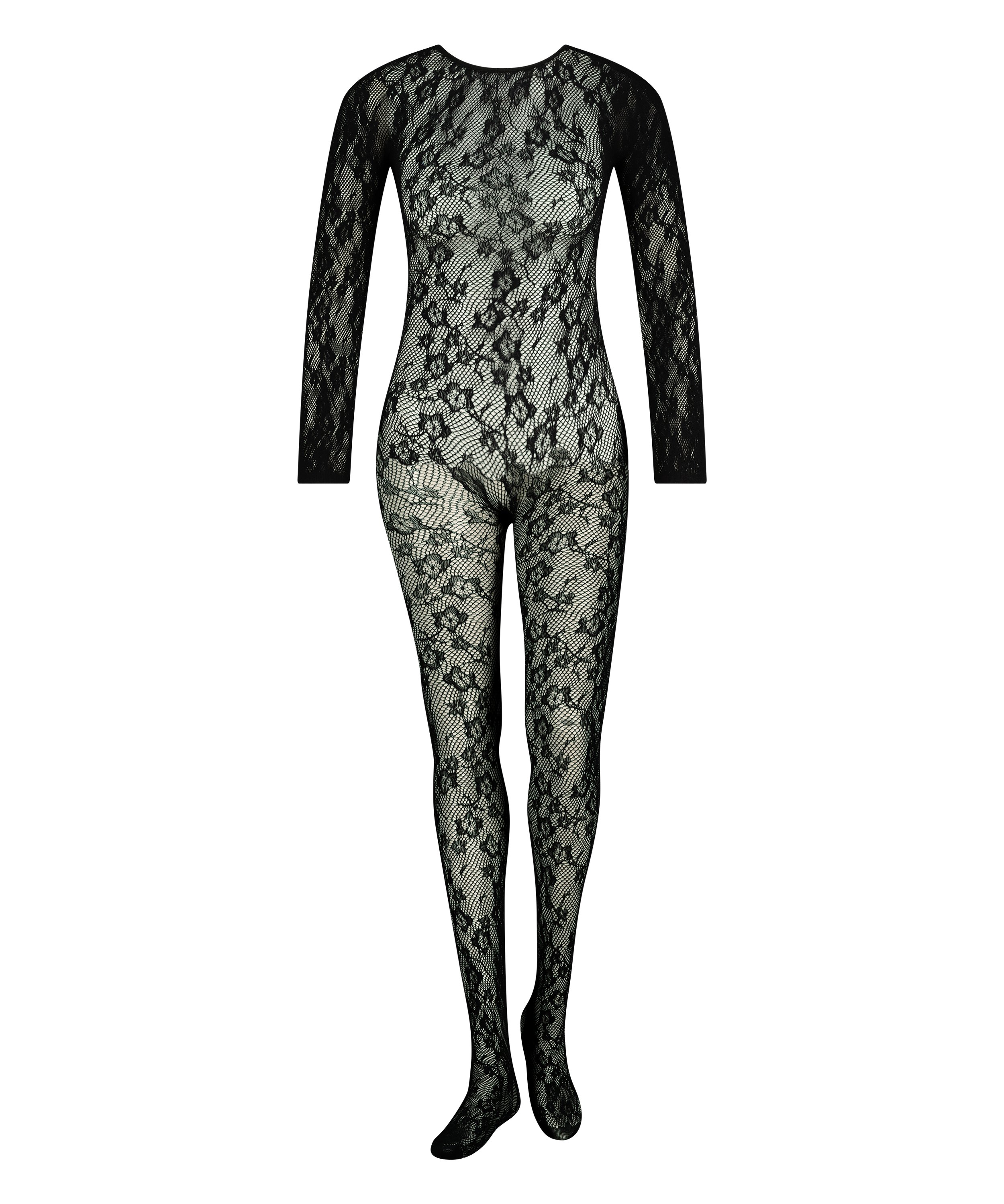 Dziewczyno, podkreśl swoją figurę w tym obowiązkowym elemencie garderoby nowego sezonu! Kombinezon wykonany jest z czarnej koronki i elastycznego materiału, ma długie rękawy i ciekawy krój. Załóż go do ulubionej pary szpilek lub noś samodzielnie jako wyróżniający się element bielizny.