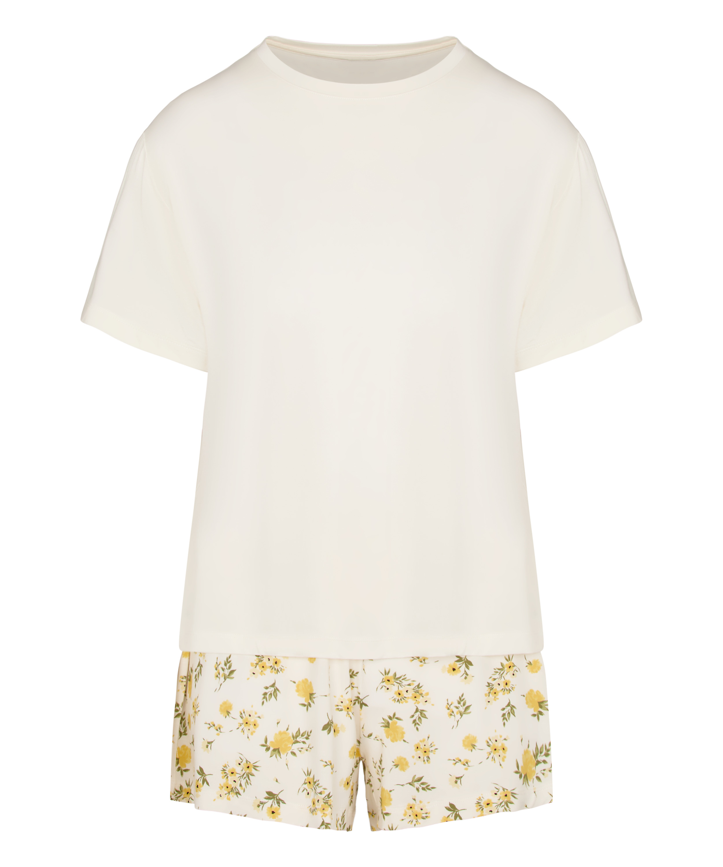 Wygodny komplet piżamy z miękkiej, lekkiej mieszanki bawełny, idealny na relaksujące wieczory i spokojne poranki. Koszulka z krótkim rękawem ma luźny, przewiewny krój, a pasujące szorty posiadają elastyczną gumkę w pasie dla dodatkowego komfortu. Subtelny kwiatowy nadruk nadaje świeży, kobiecy charakter. Doskonały zarówno do spania, jak i wypoczynku w domu.