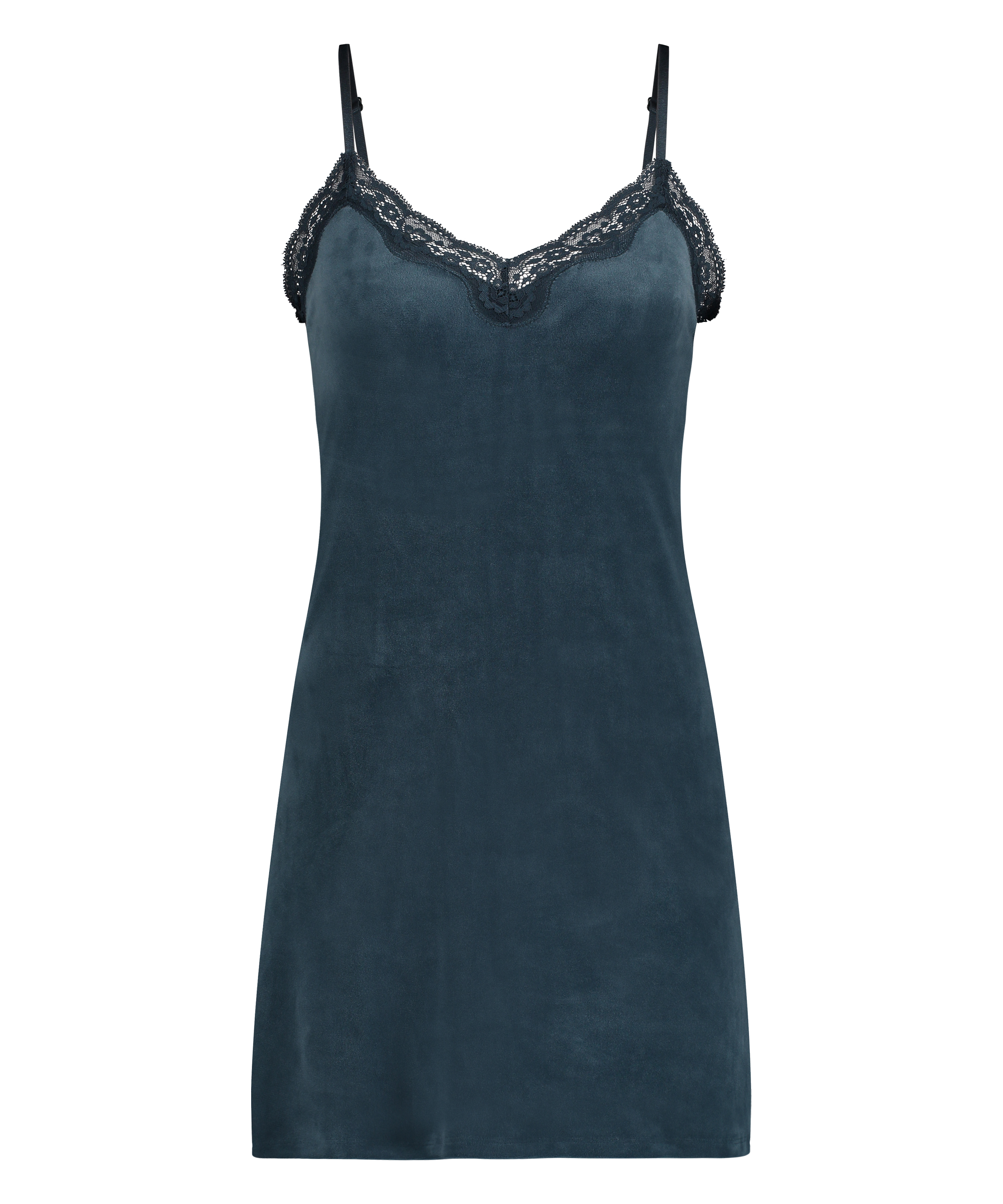 Koronkowa welurowa sukienka wsuwana - Niebieski