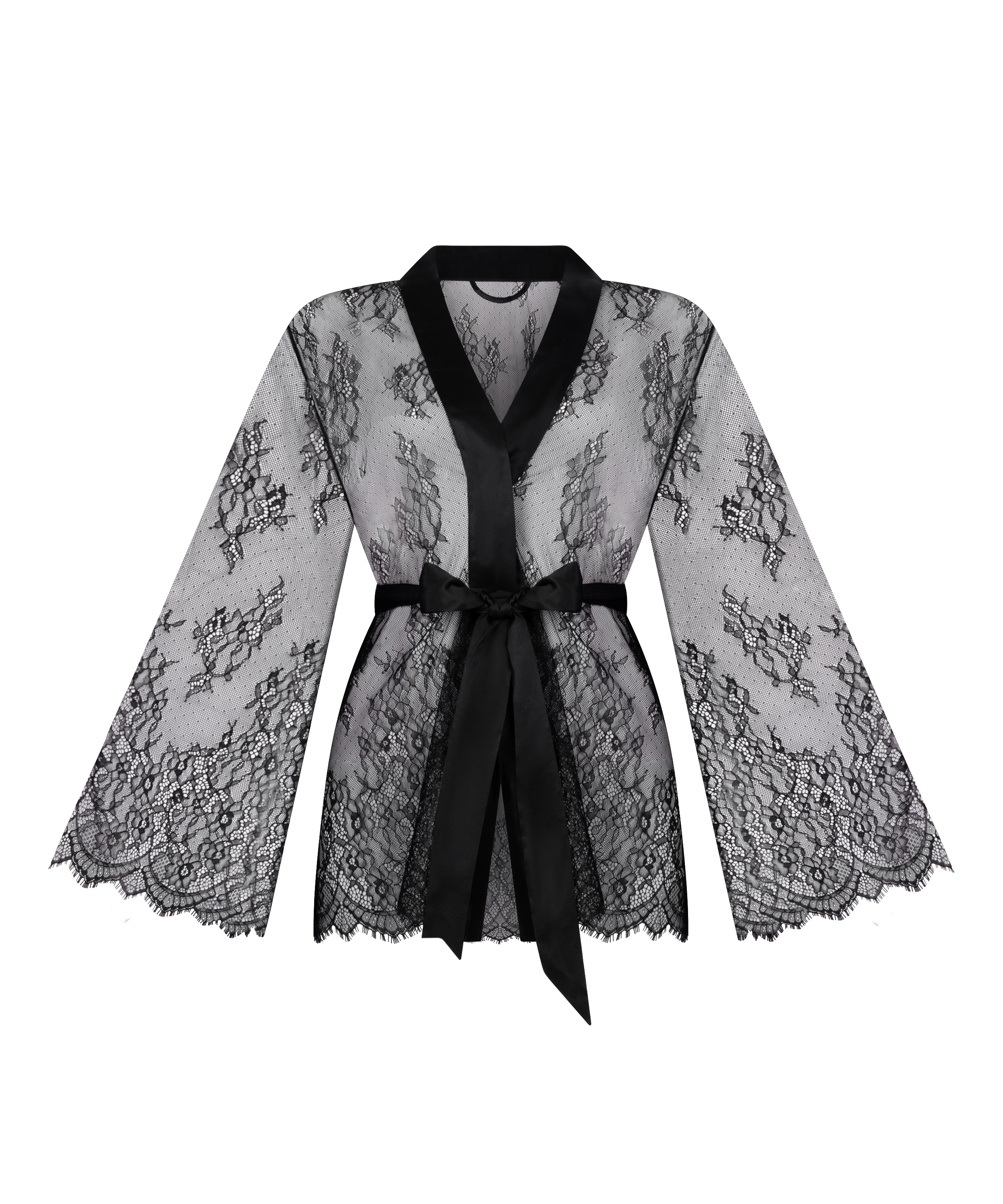 Otul się elegancją z naszym kimonem wykonanym na całej powierzchni z koronki, luksusowym dodatkiem do Twojej kolekcji bielizny. Ten zachwycający element garderoby charakteryzuje się koronką na całej powierzchni, która emanuje kobiecością, a jedwabisty satynowy pasek podkreśla talię, zapewniając pochlebną sylwetkę.