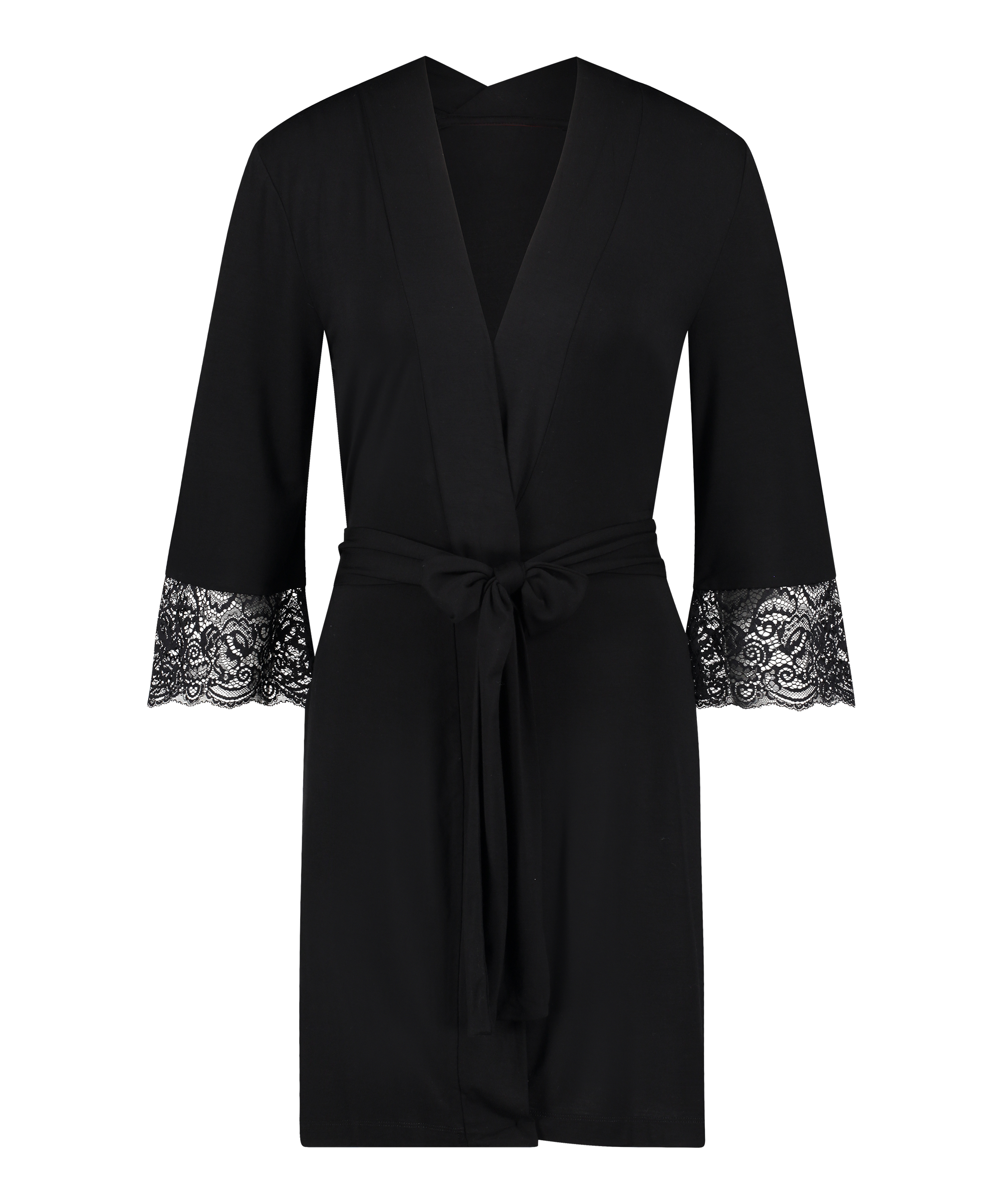 To kimono jest dla ciebie idealne! Kimono jest wykonane z luźnego dżerseju i ma koronkowe wykończenia na rękawach. Produkt jest wykonany z włókien LENZING™ ECOVERO™, które oferują klientom ekologiczną wiskozę o niskim wpływie na środowisko. LENZING™ i ECOVERO™ to znaki towarowe firmy Lenzing AG.