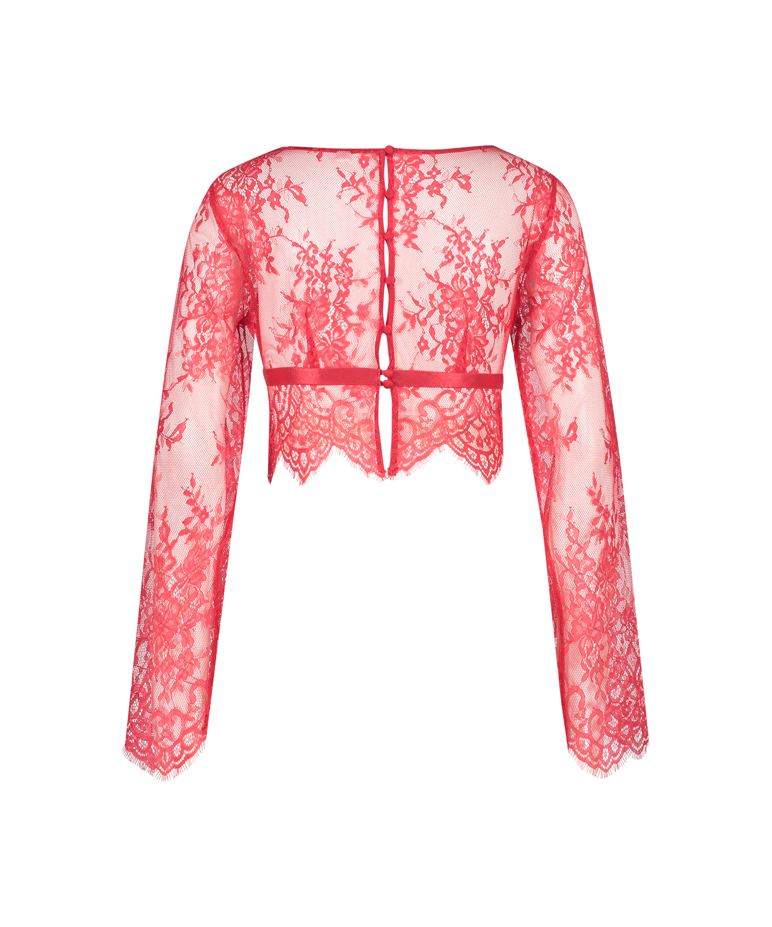 Poczuj się seksownie w tym koronkowym topie! Prześwitujący top ma elastyczny pasek w talii i zapięcie na guziki na plecach. Połącz z dopasowaną spódnicą z kolekcji Private!