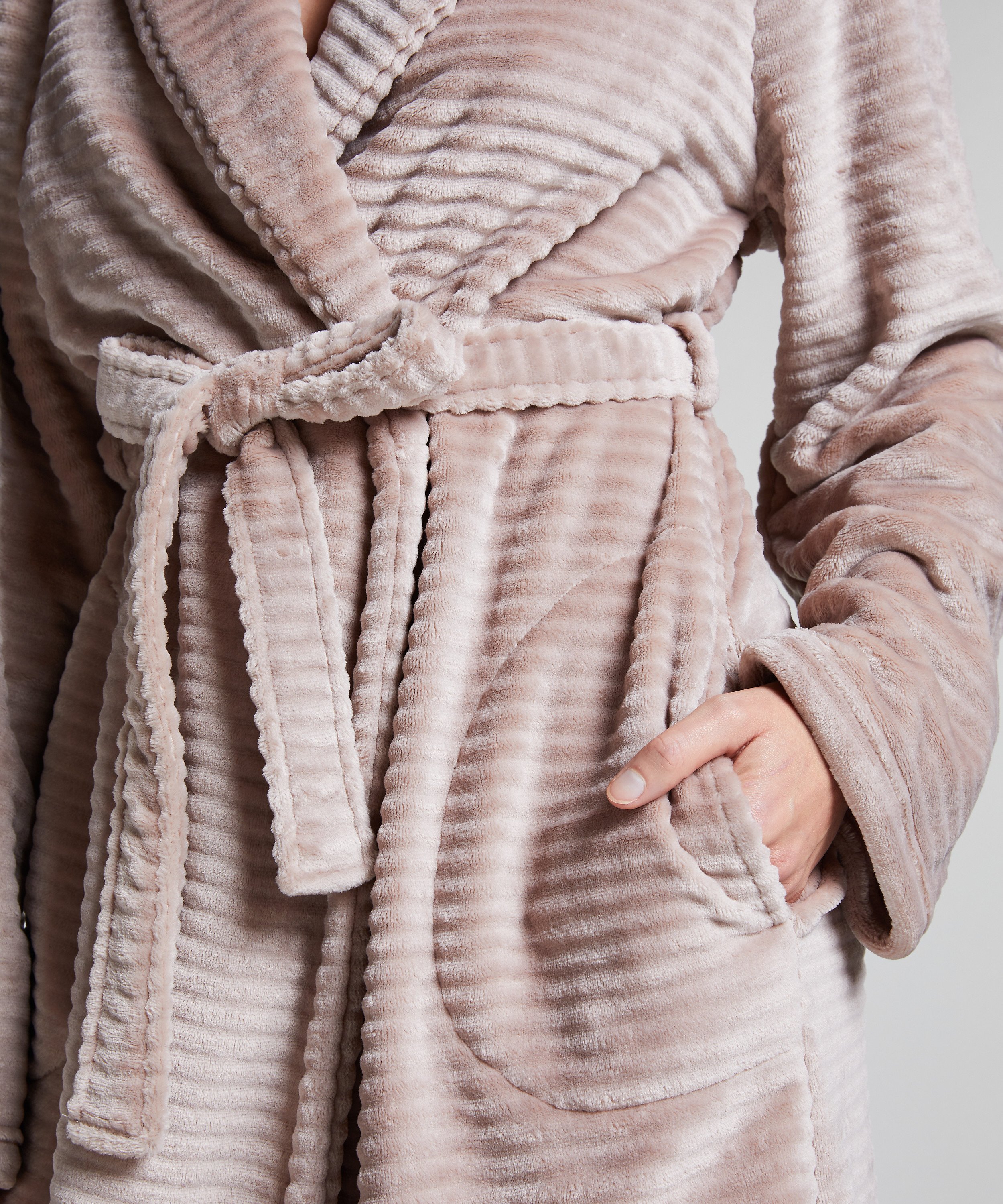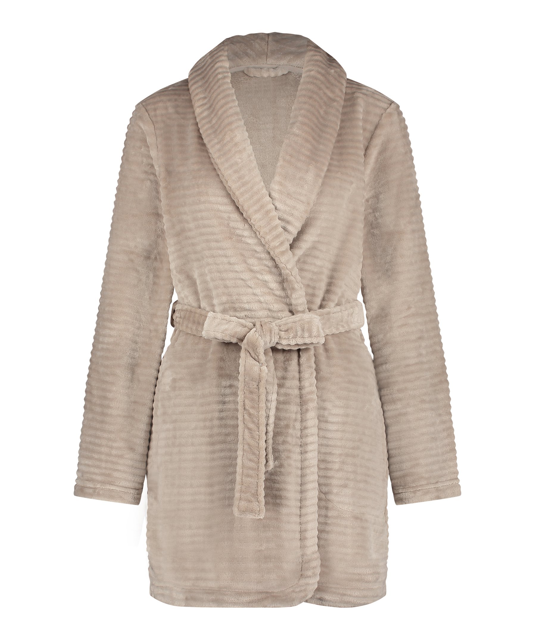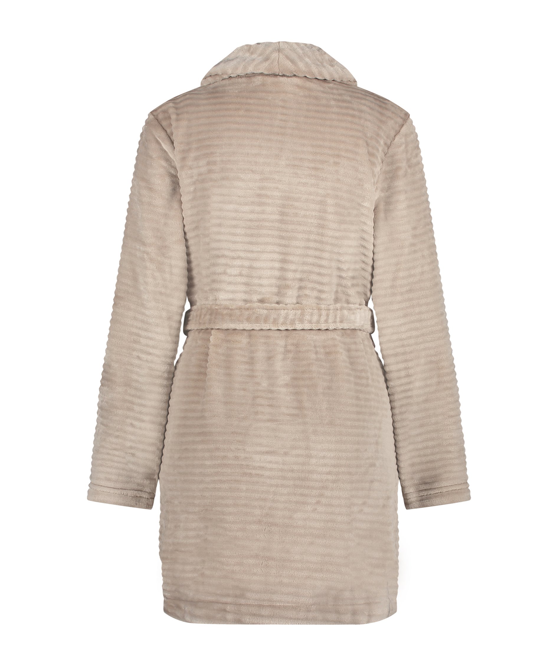 Krótki szlafrok z prążkowanego polaru - Beżowy