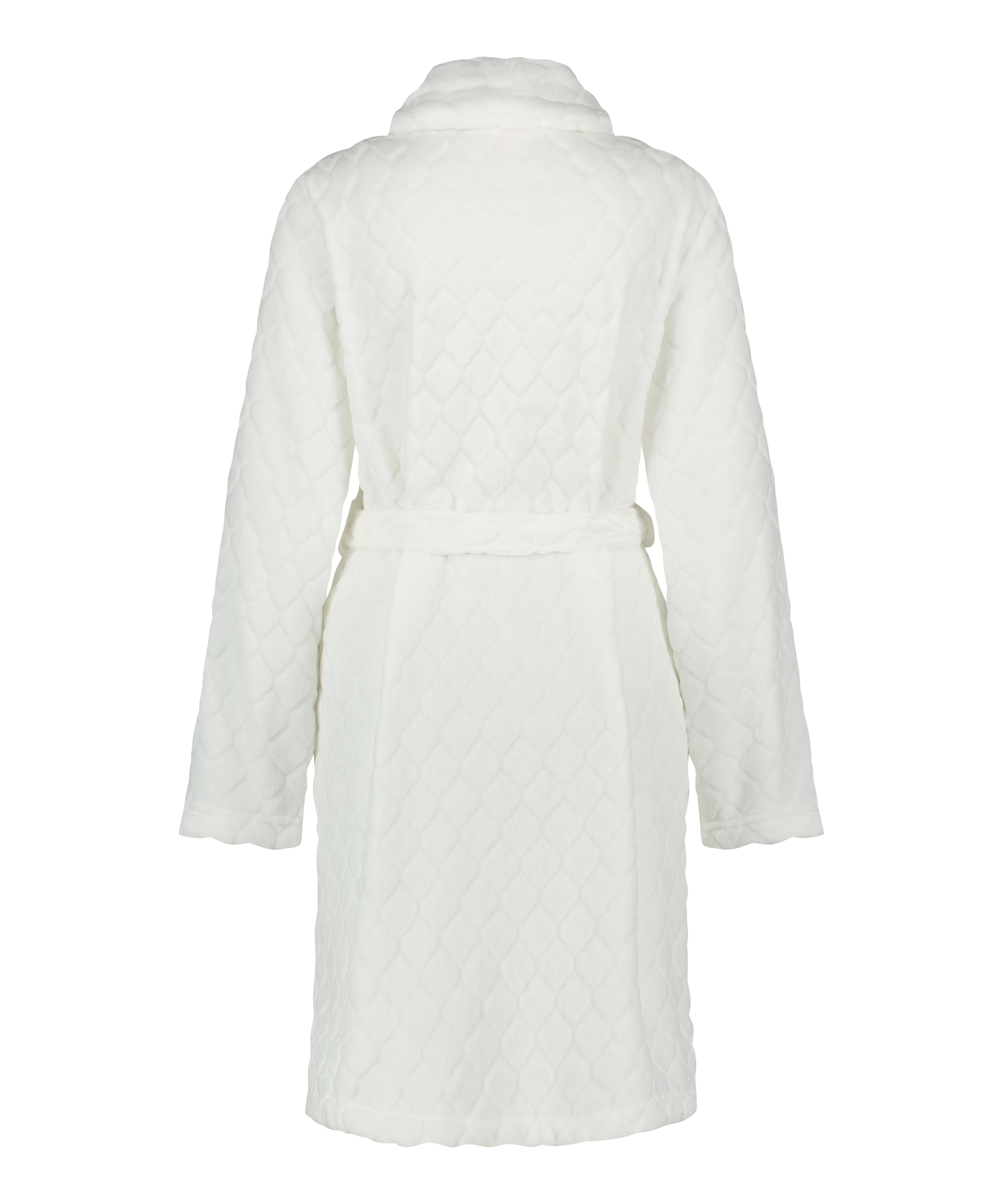 Krótki szlafrok z prążkowanego polaru - Biały