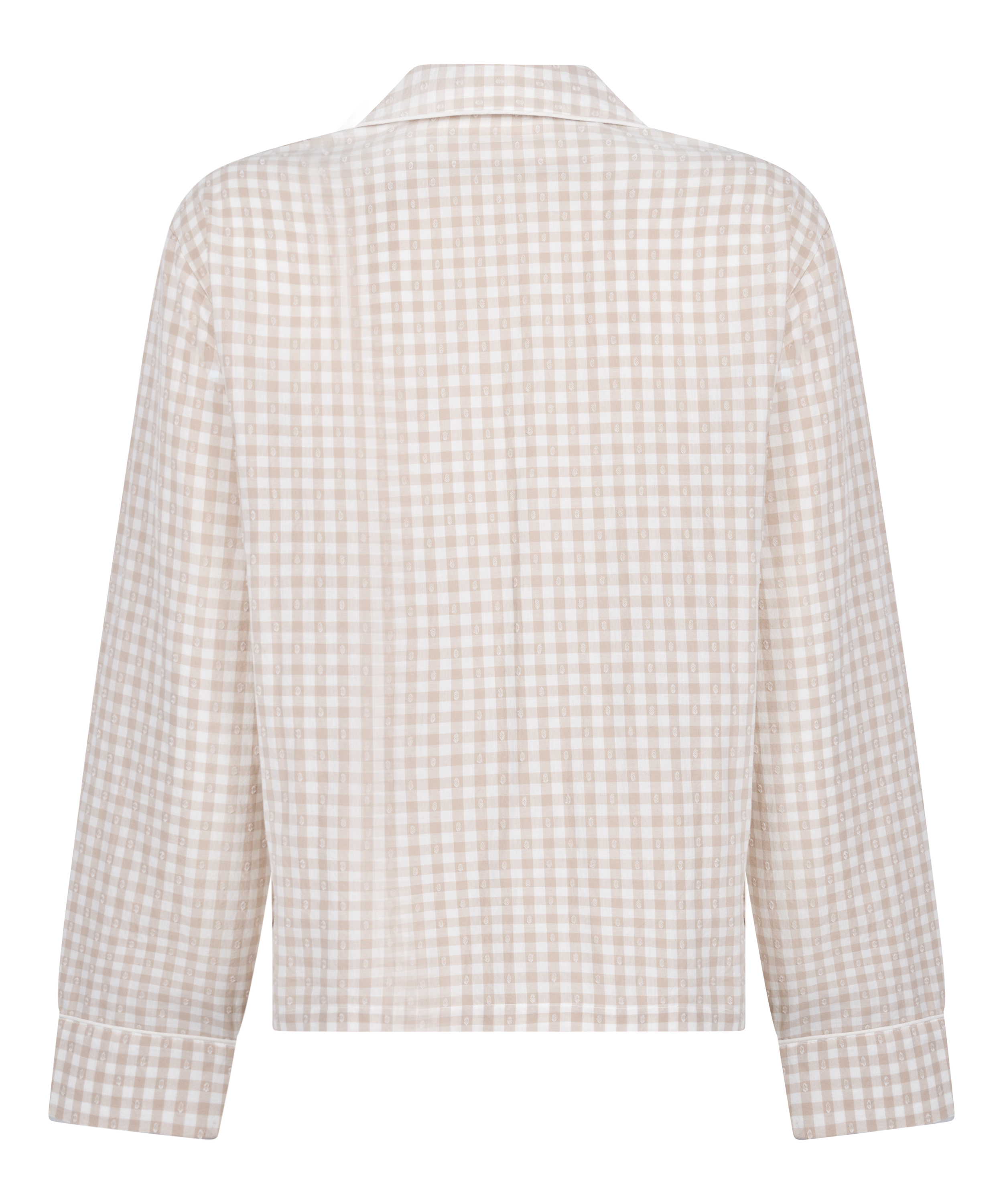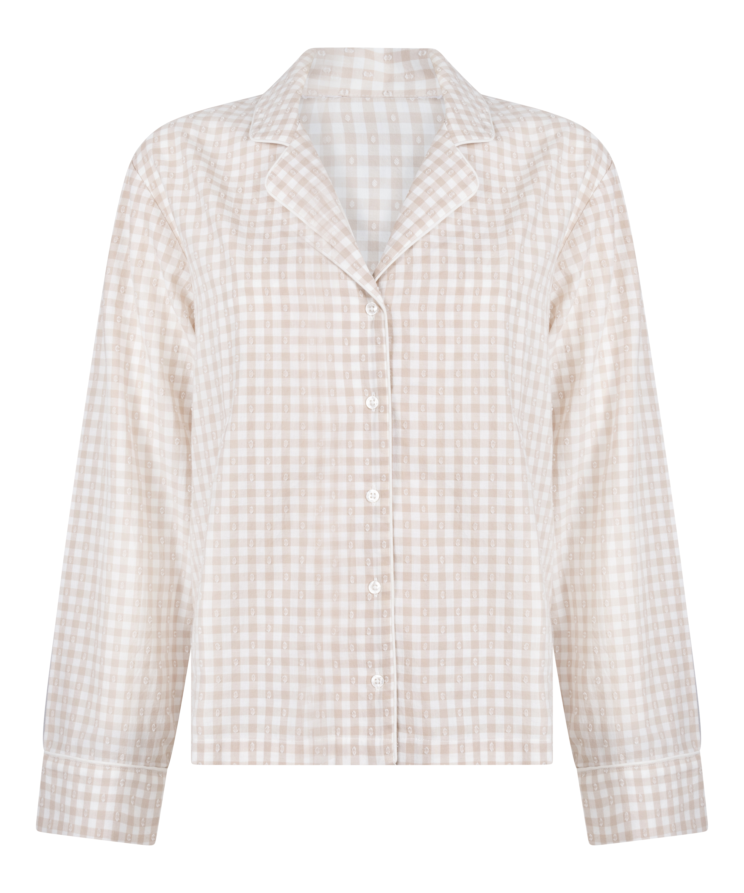Kurtka Piżamowa Dobby z Tkanej Bawełny - Beżowy