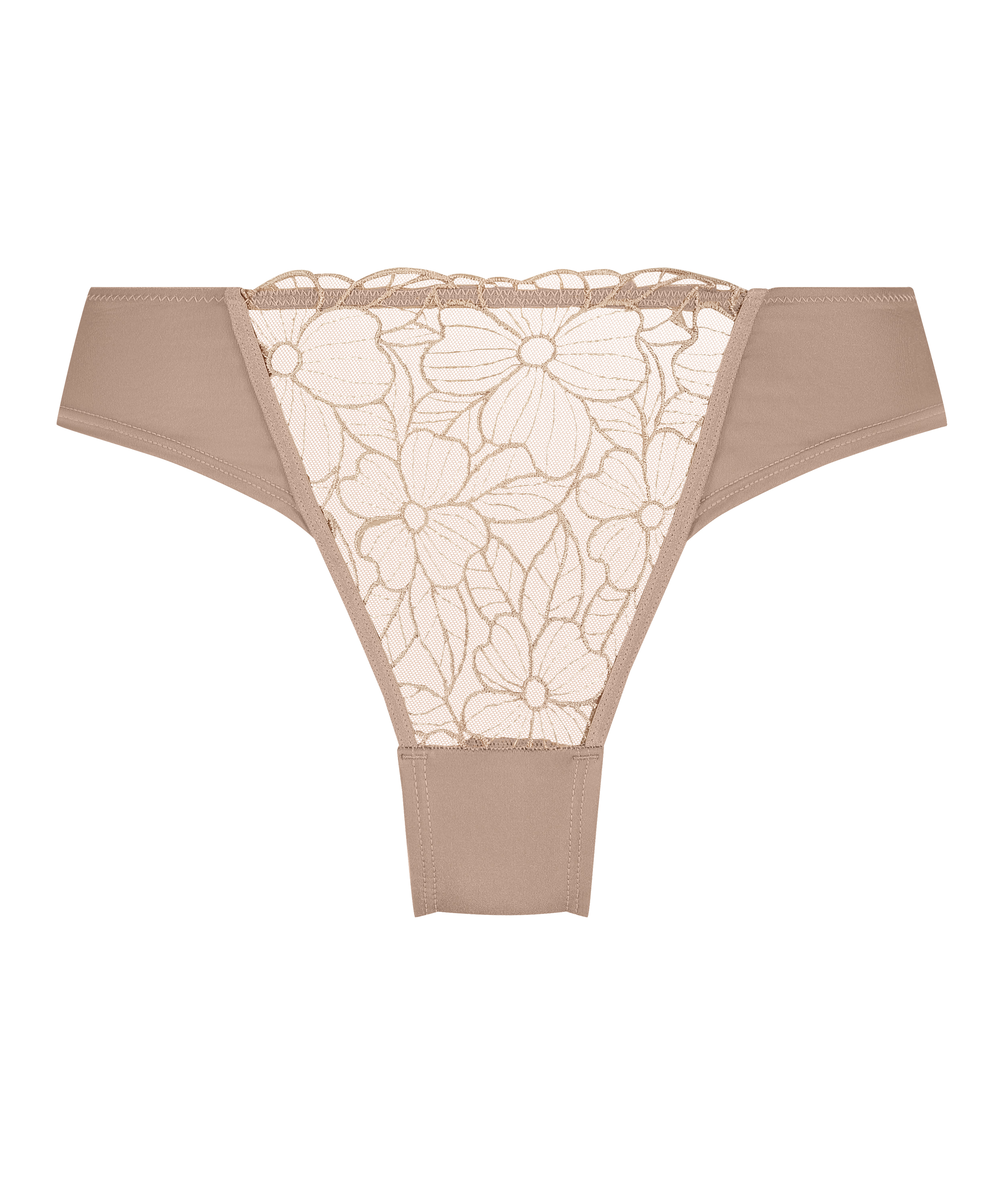 Te piękne i wygodne majtki damskie wykonane są z miękkiego i oddychającego materiału. Koronkowy wzór z kwiatami dodaje elegancji i kobiecości, a fason zapewnia gładki i bezszwowy wygląd pod ubraniem.