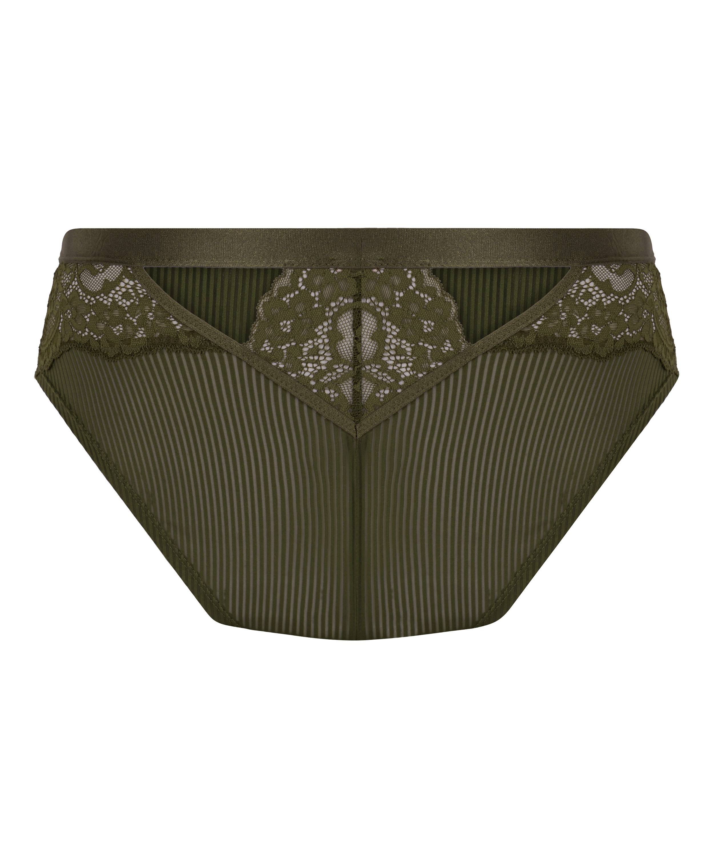 Poczuj się dobrze w tym brazylijskim modelu z wysokim stanem! Ma piękne koronkowe wykończenie po bokach i seksowne koronkowe wycięcie na plecach. Połącz ze swoim ulubionym biustonoszem!