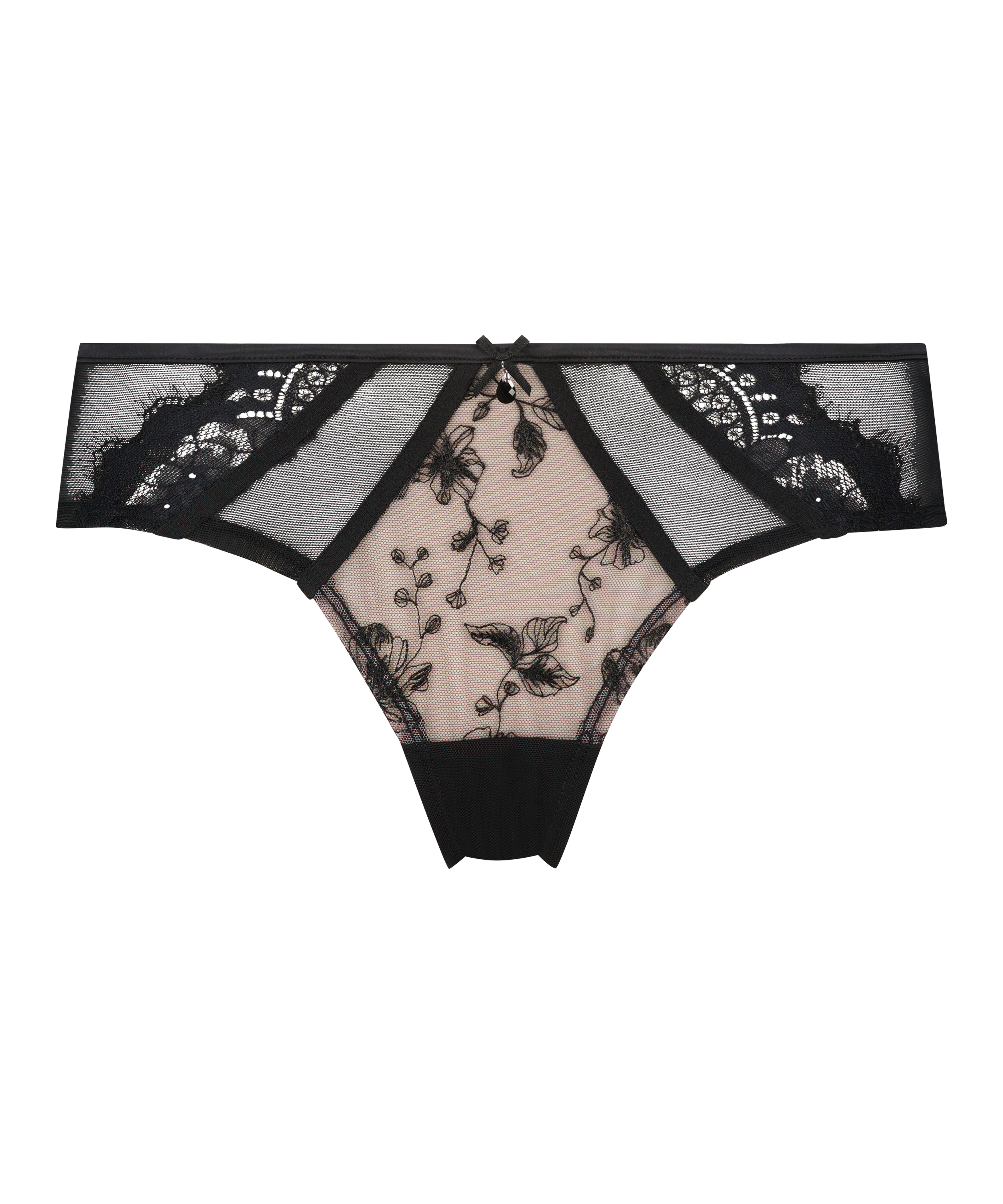 Zrelaksuj się w tych luksusowo delikatnych majteczkach wykonanych z niezwykle pięknej haftowanej siateczki! Inspirowane kwiatami wzory wirują z przodu i z tyłu, dodając dynamizmu i wyrazistości. Centralny panel z gładkiej siateczki z tyłu podkreśli Twoje krągłości, a wąski pasek w talii doda uroku, uwypuklając kości biodrowe. Połącz je z dopasowanym biustonoszem Sia, aby stworzyć idealną pełną stylizację.