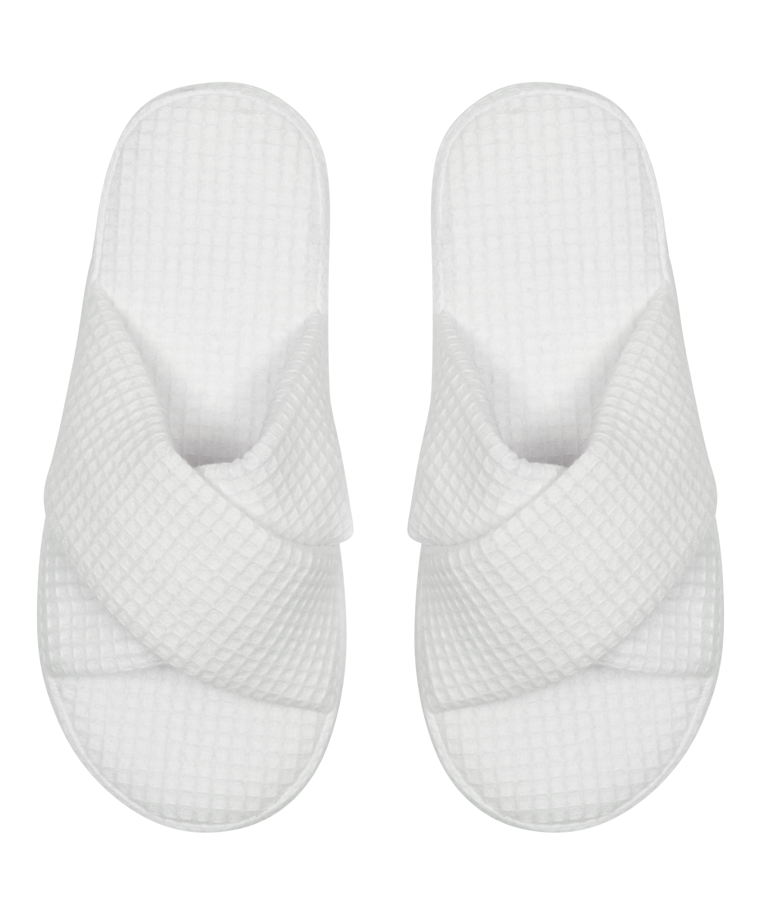 Poczuj komfort i wyjątkową lekkość dzięki tym niezwykle miękkim kapciom z tkaniny waflowej. Wyściełana podeszwa i teksturowane wykończenie zapewniają wygodę i przewiewność — idealne do leniuchowania. Zaprojektowane z myślą o wygodzie noszenia, doskonale nadają się do codziennego relaksu.