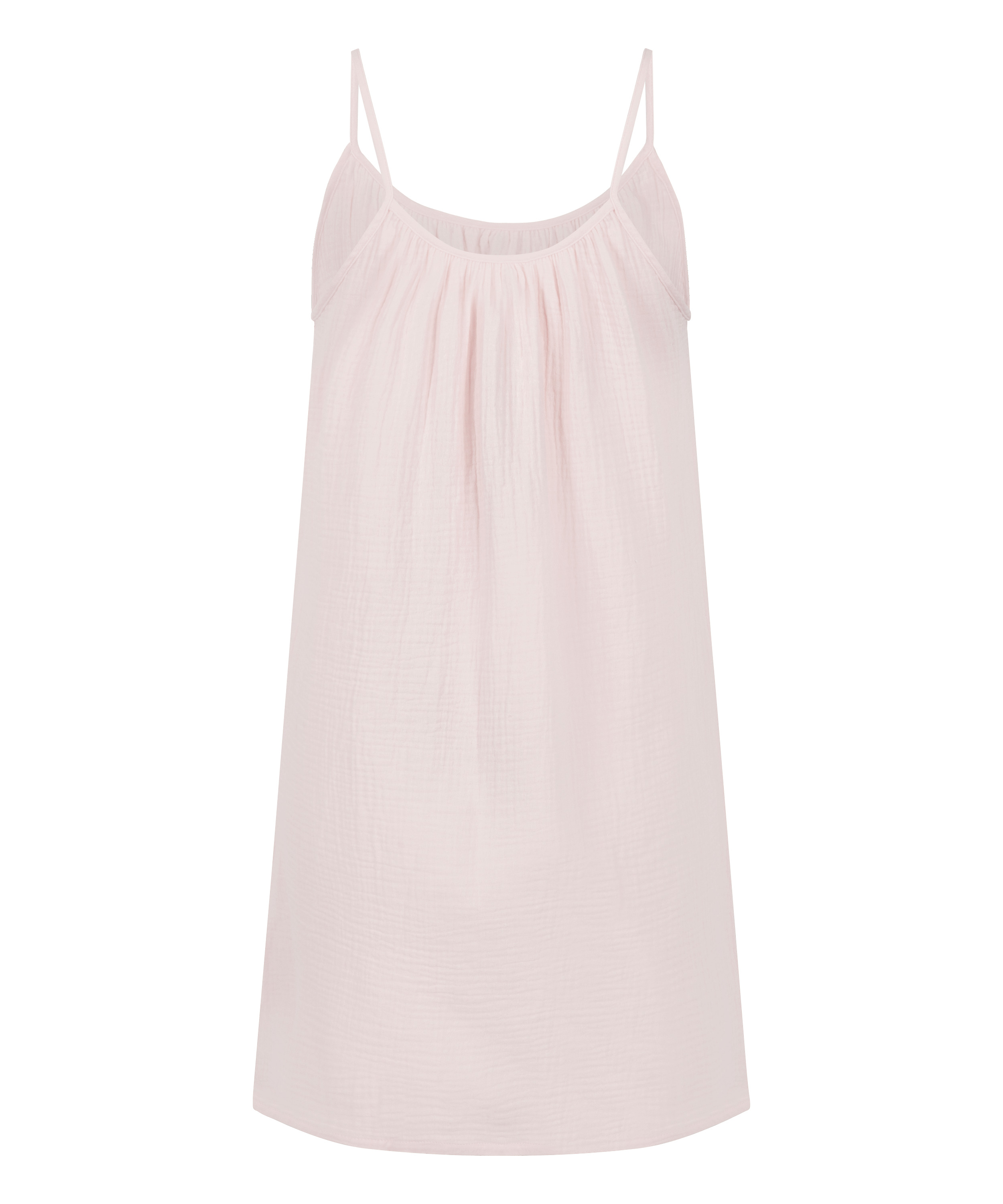 Zapewnij sobie wygodę i chłód w tej koszuli nocnej bez rękawów, wykonanej z miękkiego muślinu bawełnianego. Luźny krój gwarantuje wygodę przez całą noc, a lekka tkanina doskonale sprawdza się w ciepłe noce.