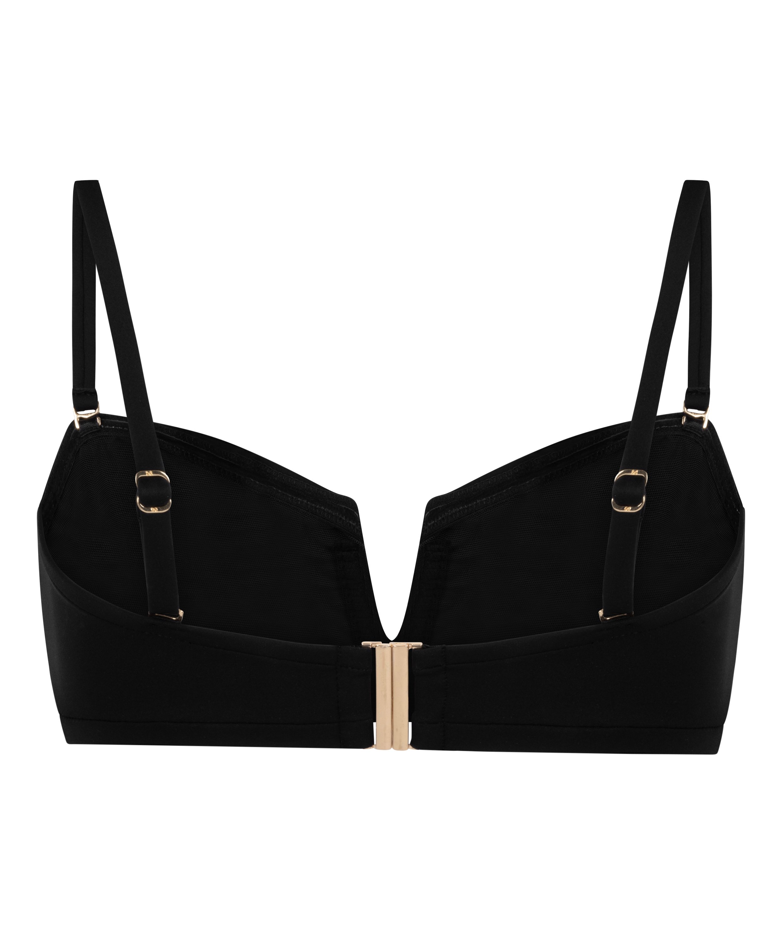 Uzupełnij swoją kolekcję strojów kąpielowych o ten top typu bandeau z dekoltem w kształcie litery V z przodu, który dodaje odrobinę nowoczesnej elegancji. Ten styl bandeau został zaprojektowany z myślą o bezpiecznym i płaskim dopasowaniu, oferując minimalistyczny wygląd.