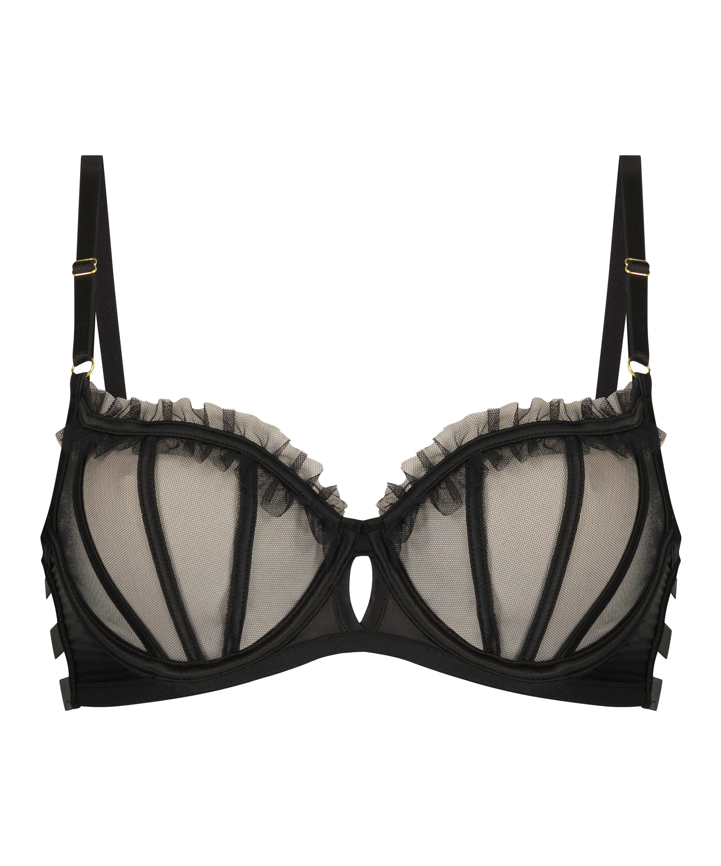 Piękny i seksowny biustonosz! Courtney to prosty i subtelny biustonosz wykonany z delikatnej siarczki z detalami w postaci falbanek, które nadają całości wyrazistości i kształtu. Ramiączka można regulować, aby zapewnić doskonałe dopasowanie i uczucie komfortu. Noś go z pasującymi produktami z kolekcji Private, by stworzyć pełną stylizację.