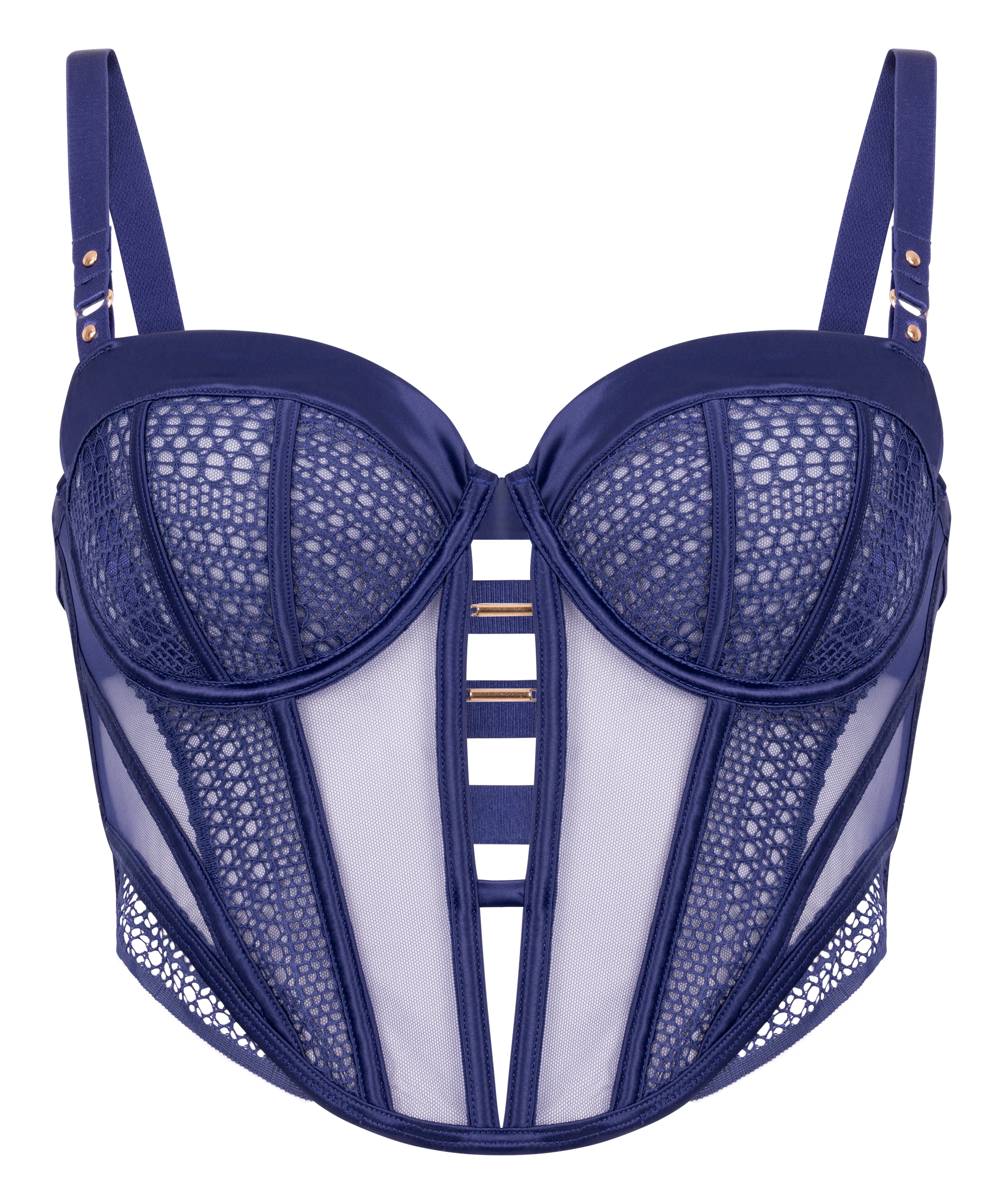 Ten nieusztywniany biustonosz o długim fasonie łączy w sobie swobodną elegancję z odważnym stylem. Dzięki wycięciu z przodu i delikatnym detalom z siateczki model ten jest przewiewny i lekki, jednocześnie podkreślając naturalną sylwetkę. Regulowane paski na ramiona gwarantują idealne dopasowanie, dzięki czemu strój jest stylowy i wygodny do noszenia przez cały dzień.