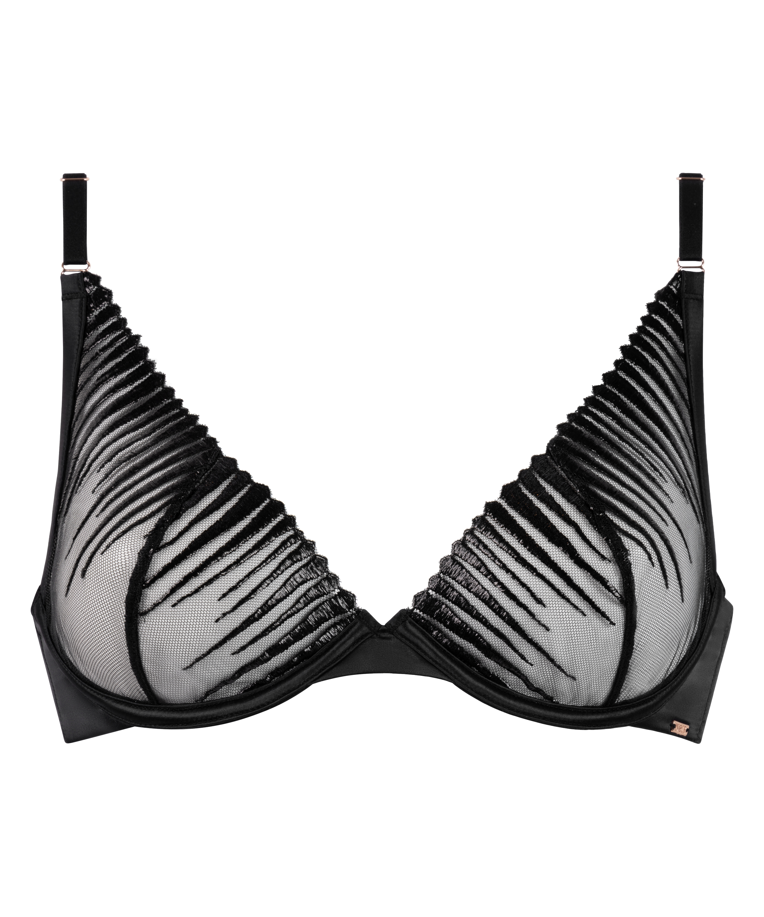 Nieusztywniany biustonosz z fiszbinami podkreśla Twoje kształty i zapewnia odpowiednie wsparcie. Biustonosz pokryty jest koronką, a z przodu jest ozdobiony siateczki. W połączeniu z pasującymi figami, otrzymasz kompletny zestaw bielizny!