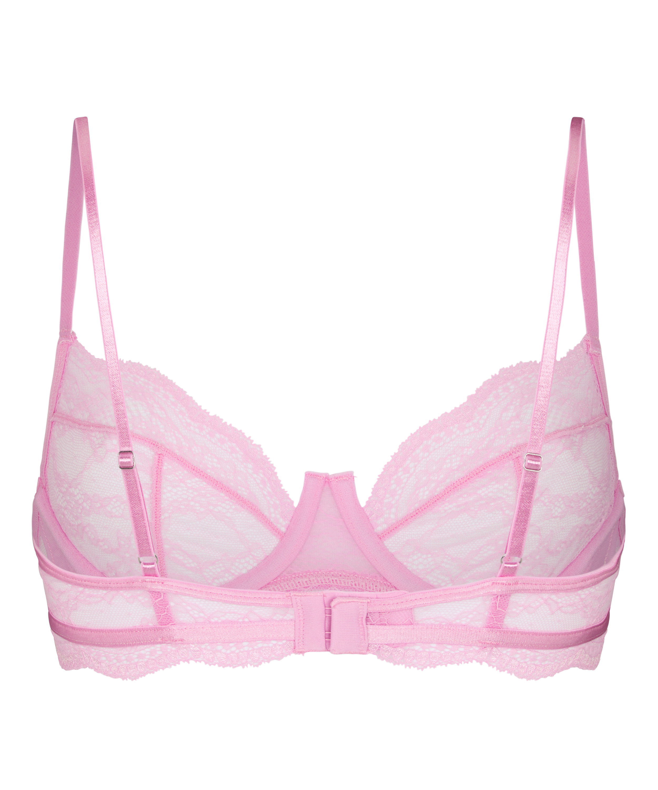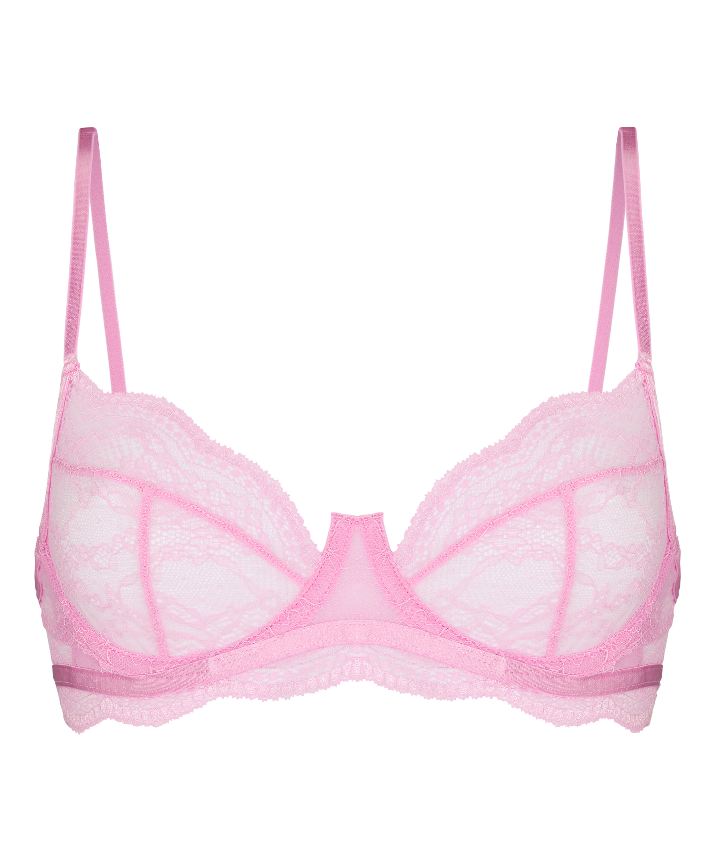 Nieusztywniany biustonosz z fiszbinami podkreśla Twoje kształty i zapewnia odpowiednie wsparcie. Biustonosz pokryty jest koronką, a z przodu jest ozdobiony kokardka. W połączeniu z pasującymi figami, otrzymasz kompletny zestaw bielizny!