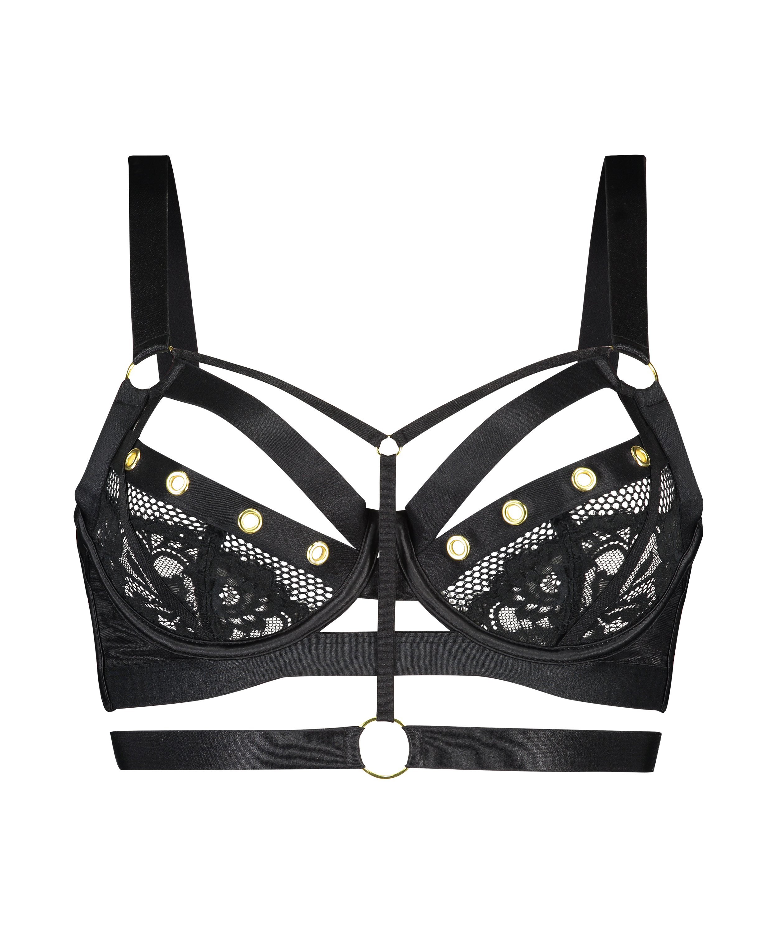 Czujesz się uwodzicielsko? Załóż ten seksowny biustonosz! Biustonosz jest wykończony paskami. Miseczki wykonane są z koronki. Z tyłu znajduje się szerokie zapięcie, sprawiając, że biustonosz jest bardzo wygodny. Połącz go z pasującymi figami z naszej kolekcji Private, aby uzyskać kompletny zestaw!