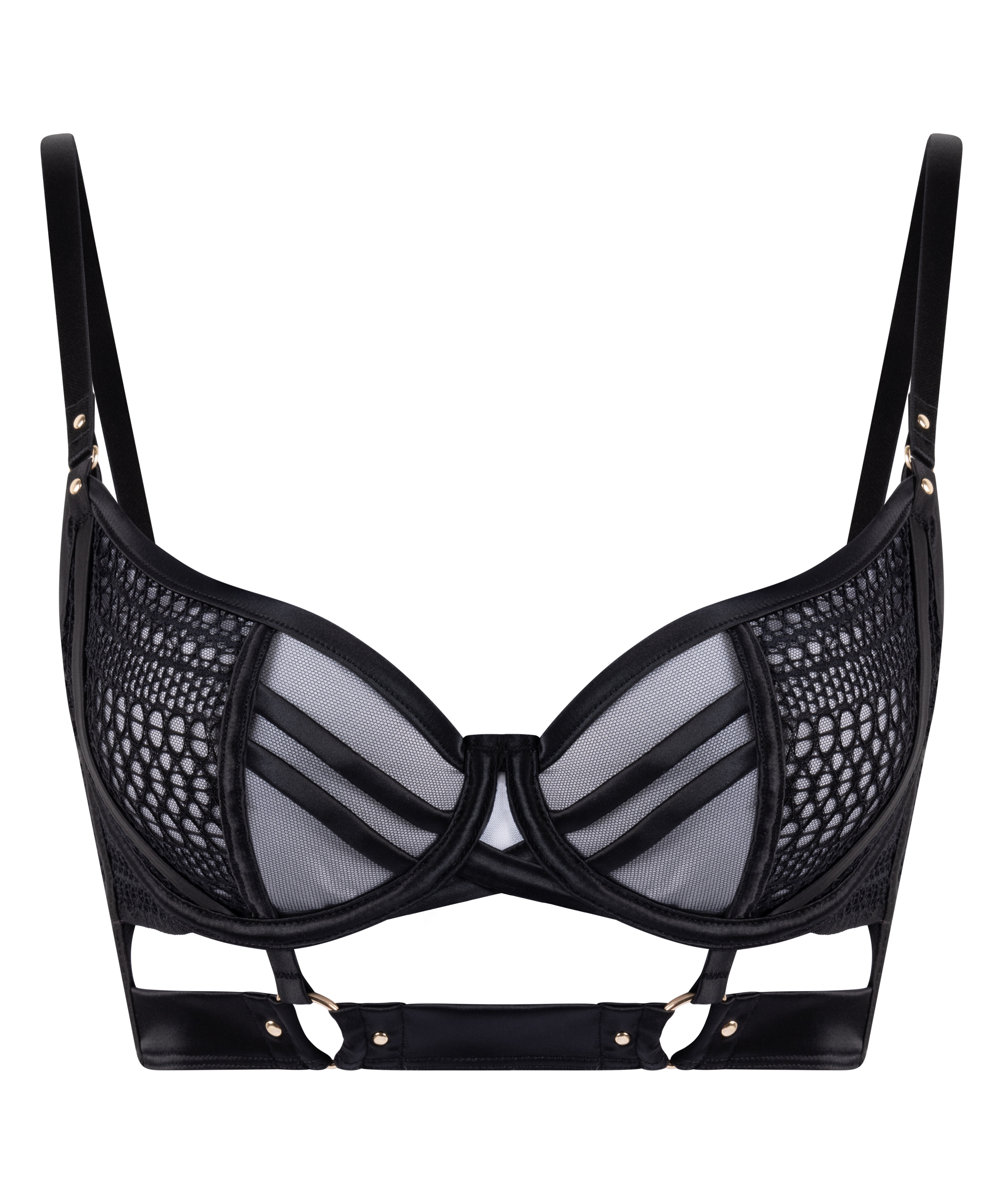 Poczuj pewność siebie w tym biustonoszu, stworzonym, by zachwycać i dodawać siły. Wycięcia i paski tworzą odważny look. Posiada wspierające miseczki, które podkreślają naturalny kształt biustonosza.