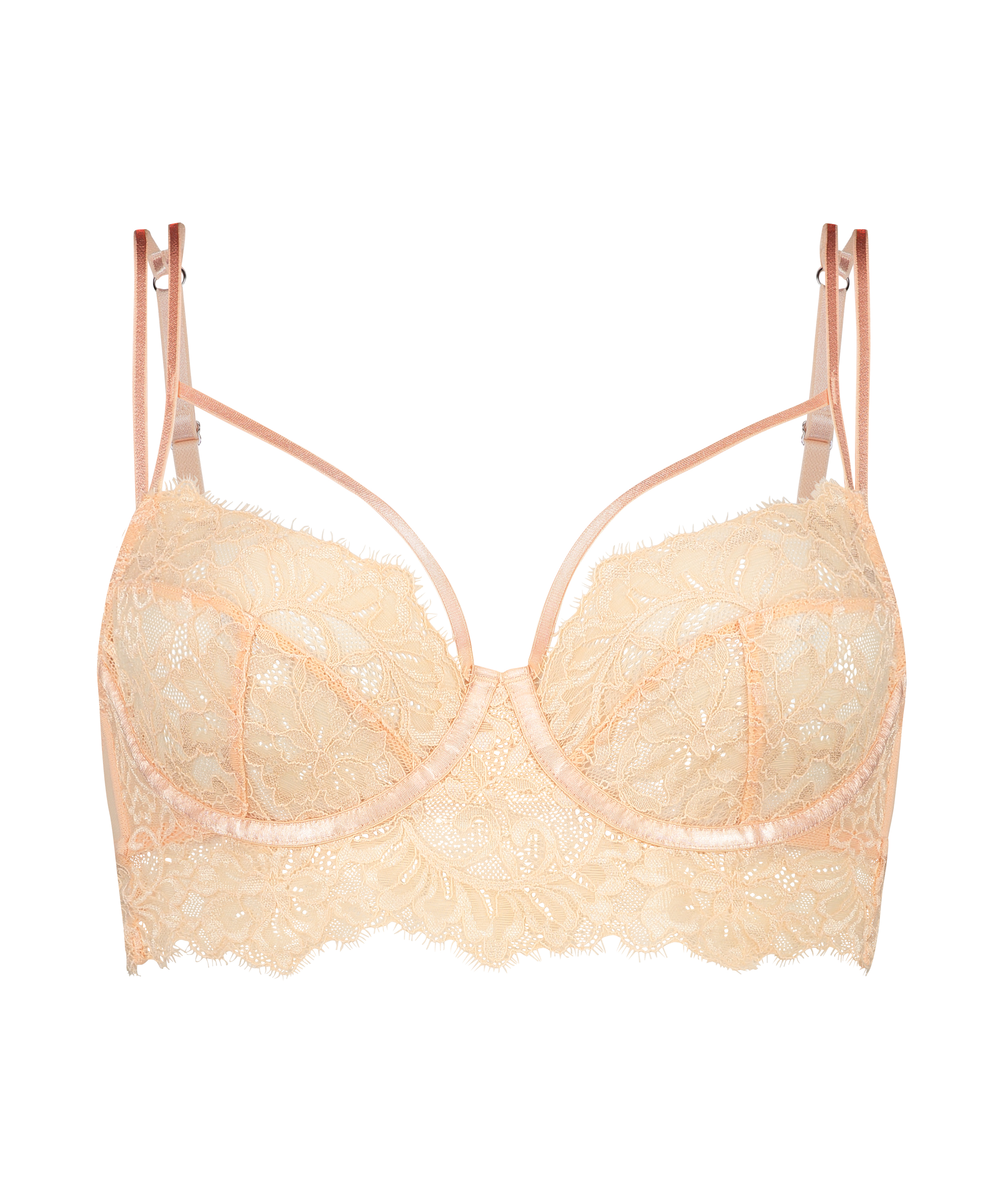 Ten biustonosz to Twój nowy must-have! Model o wydłużonym fasonie, pokryty zmysłową kwiatową koronką i detalami na ramiączkach. Fiszbiny dają odpowiednie wsparcie, a regulowane ramiączka zapewniają idealne dopasowanie. Połącz z dopasowanymi elementami, aby stworzyć komplet!