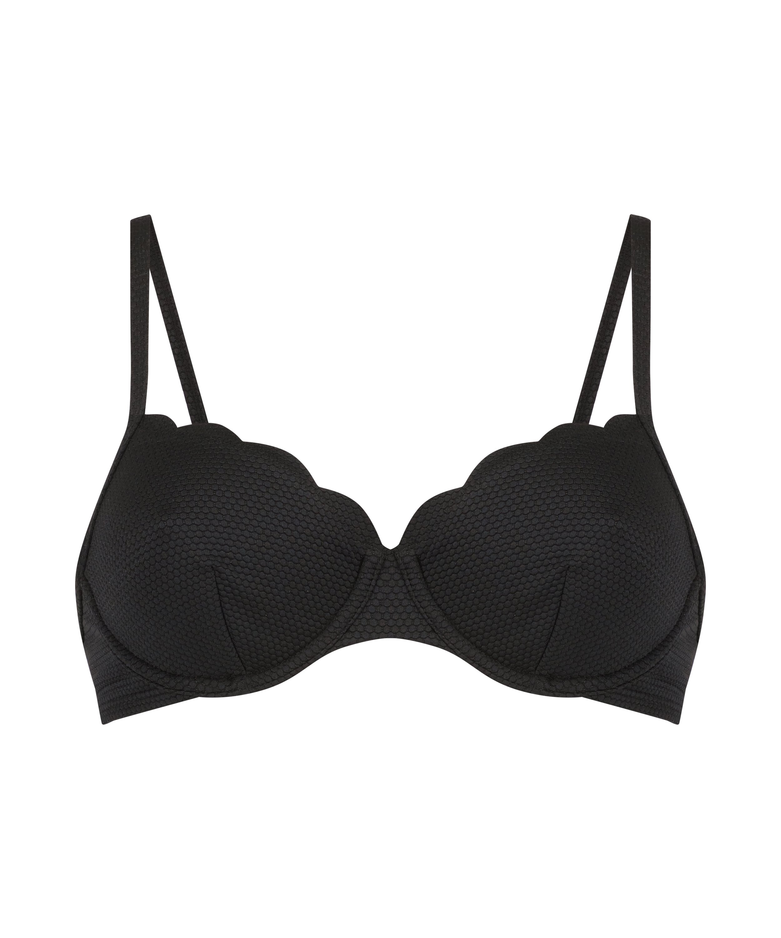Nieusztywniany stanik bikini z fiszbinami, z falowanym brzegiem - Czarny